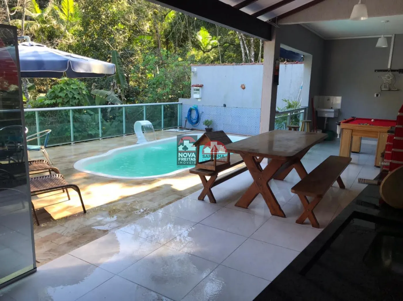 CASA TÉRREA , DISTRIBUÍDA EM 1 DORM, SALA, COZINHA, WC, VARANDA FRONTAL E COM UMA ÁREA DE LAZER ESPETACULAR!. CONTENDO: PISCINA COM CASCATA, MESA DE SINUCA, CHURRASQUEIRA À CARVÃO, FORNO À LENHA E PORTÃO AUTOMÁTICO.