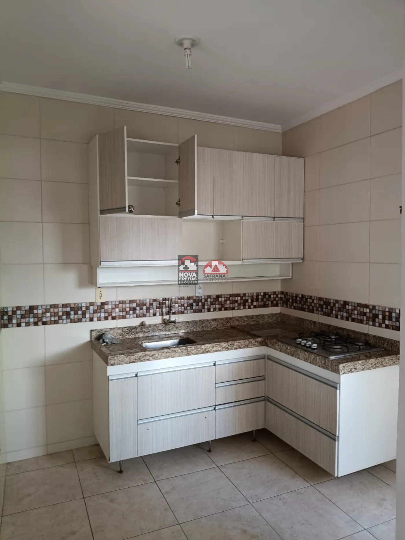 - Cozinha: equipada com armários e cooktop