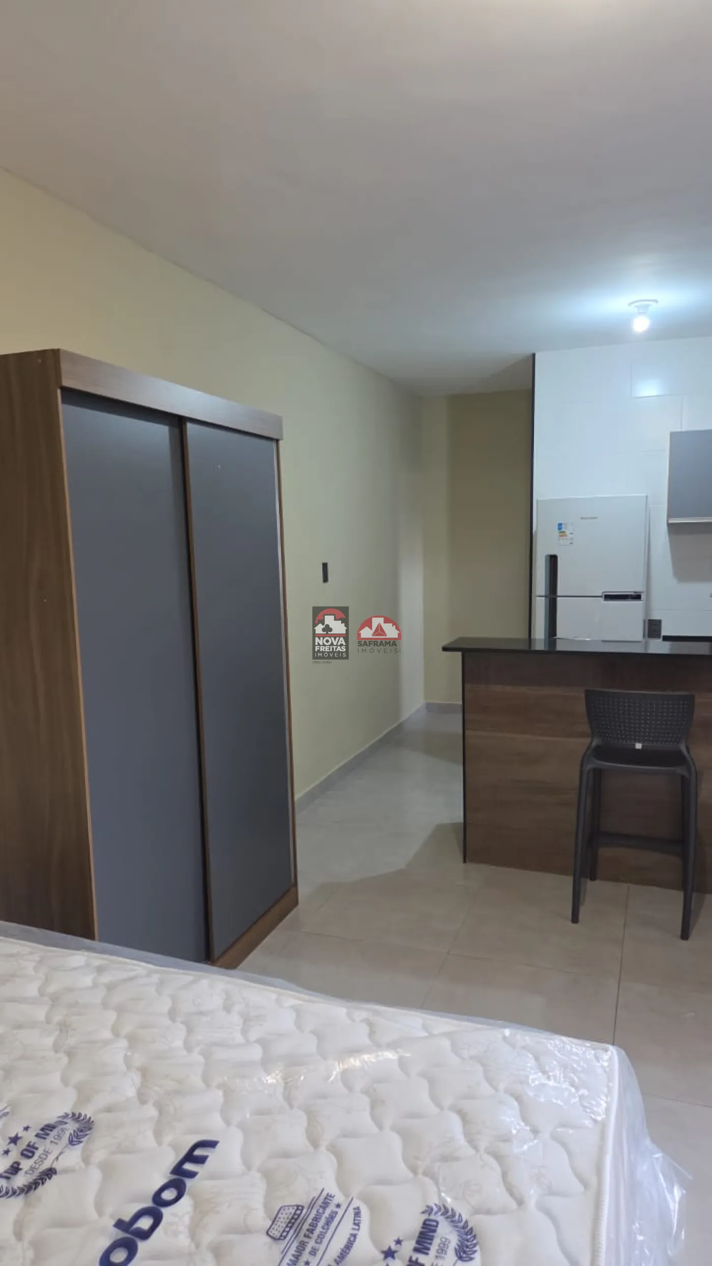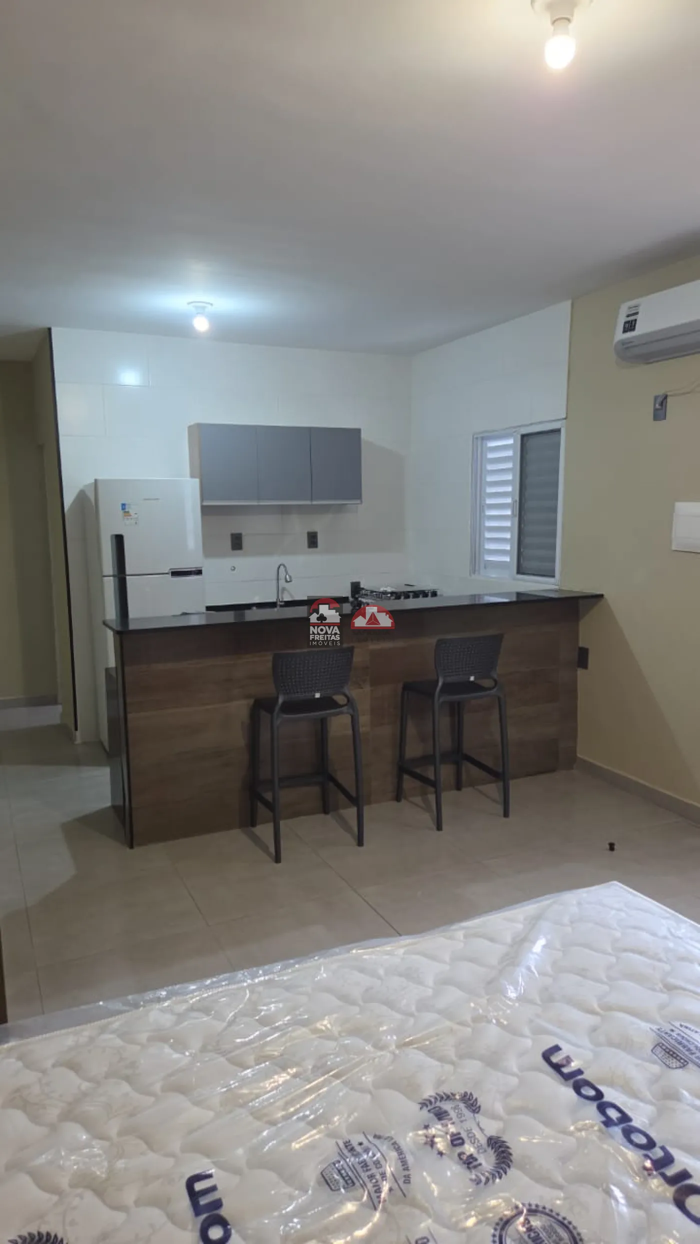 - Mobiliado: Cama box, TV 43` smart, ar condicionado e guarda-roupas
