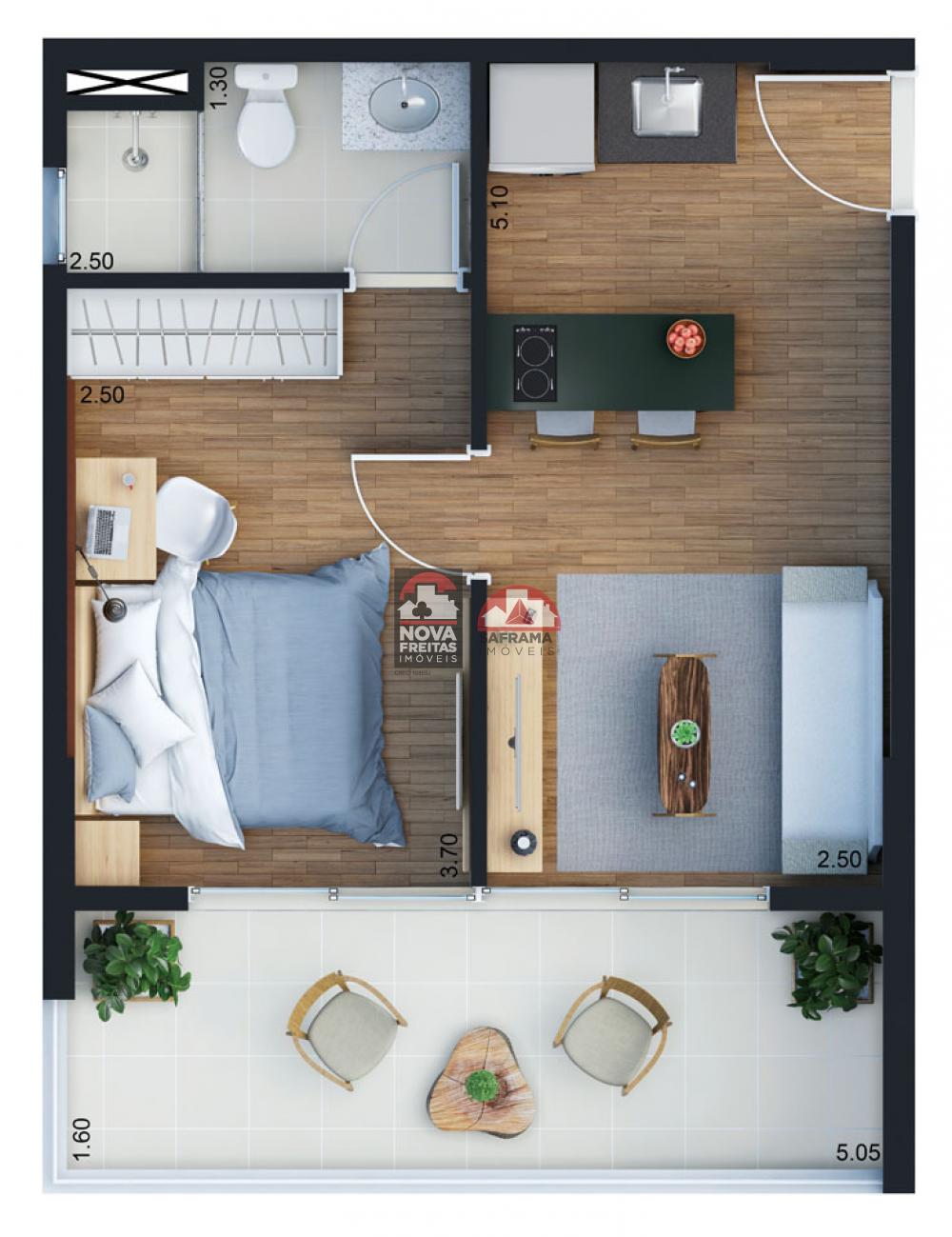Com apartamentos com 1 dormitório modelo Studio com varanda - opções de apartamentos garden (com quintal) e coberturas duplex com 1 ou 2 dormitórios.