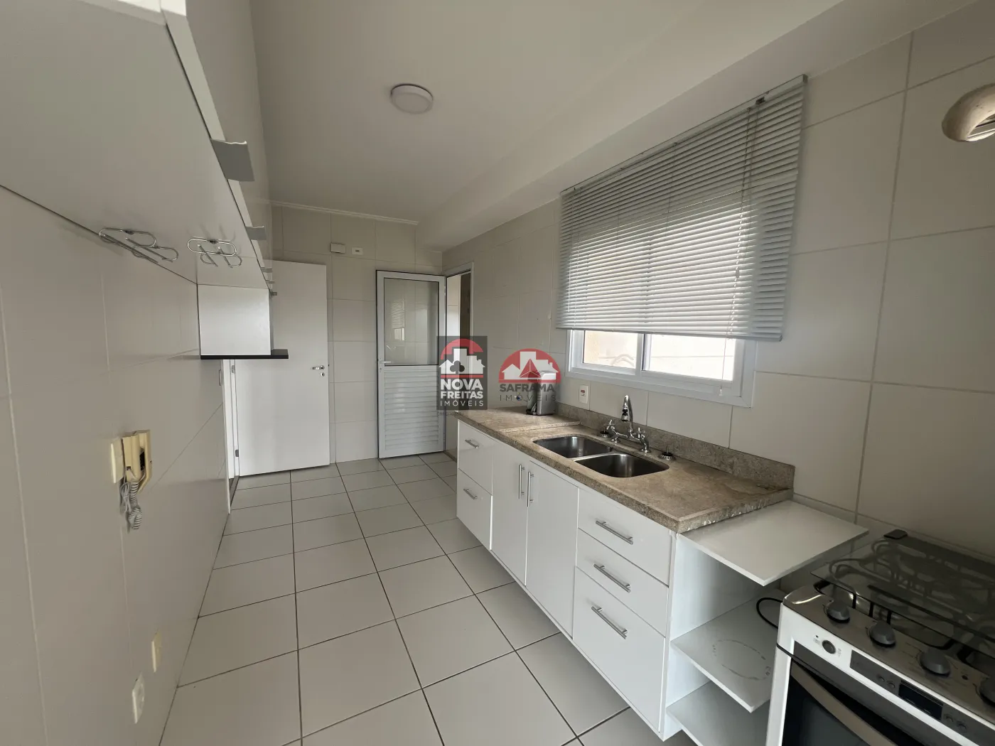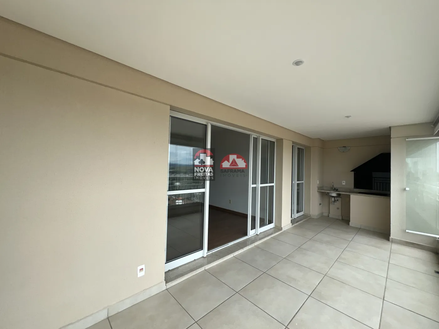 Suíte do casal com armário e ar condicionado, segundo dormitório com armário e terceiro dormitório sem armário, Banheiro que serve os dois dormitórios, Sala 2 ambientes, Terraço gourmet integrada à sala e a cozinha para receber amigos e família com comodidade, persiana de vidro (prático e moderno) e cortina rolô proporcionando um visual mais harmonioso ao espaço, Lavabo, Cozinha com fogão e armário, Despensa, Área de serviços com armários e Banho de serviços.