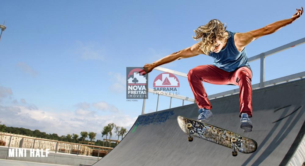 Quadra esportiva com arquibancada, circuito de caminhada com indicação de distancia, espaço crossfit, espaço pet e salão de jogos.