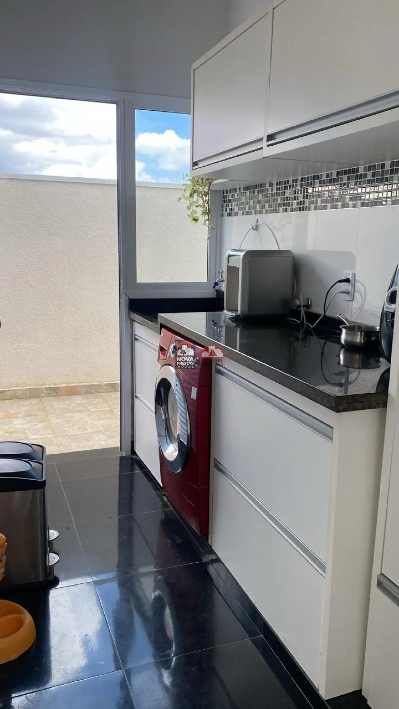 - 3 Banheiros com gabinetes e box de vidro e área de serviço independente.