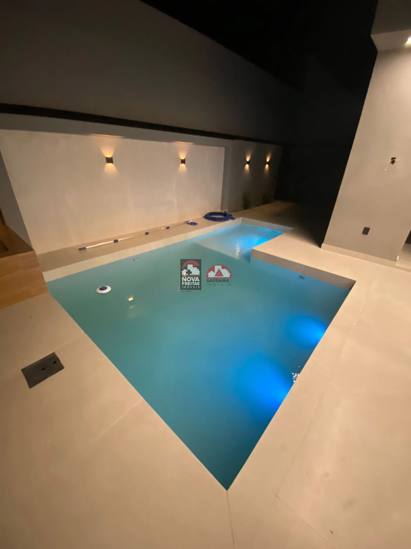 Casa com sala dois ambientes, lavabo, despensa, área gourmet com piscina, três suítes e 4 vagas de garagens.