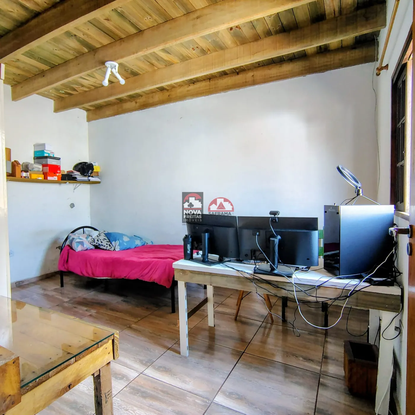 A estética rústica se destaca nos acabamentos em madeira, no telhado aparente e nos detalhes que remetem a uma vivência mais tranquila e conectada à natureza. A casa foi pensada para proporcionar bem-estar, seja como moradia fixa, casa de veraneio ou investimento em aluguel por temporada.