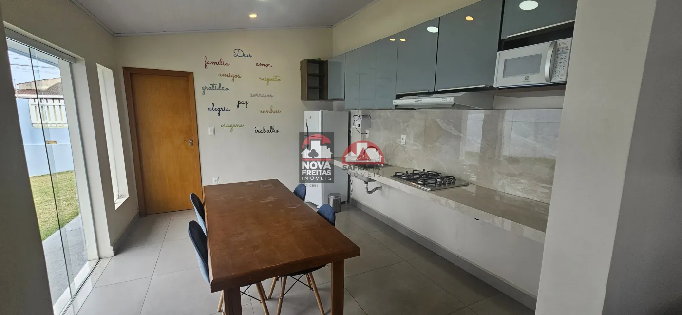 Esta casa, com 3 quartos espaçosos, sendo 2 suítes, oferece conforto e qualidade de vida para você e sua família. A sala ampla, com dois ambientes, é perfeita para receber amigos e familiares. A cozinha, com armários planejados, é prática e funcional. Além disso, a casa conta com área de serviço separada e um quintal com espaço para jardim e piscina.
