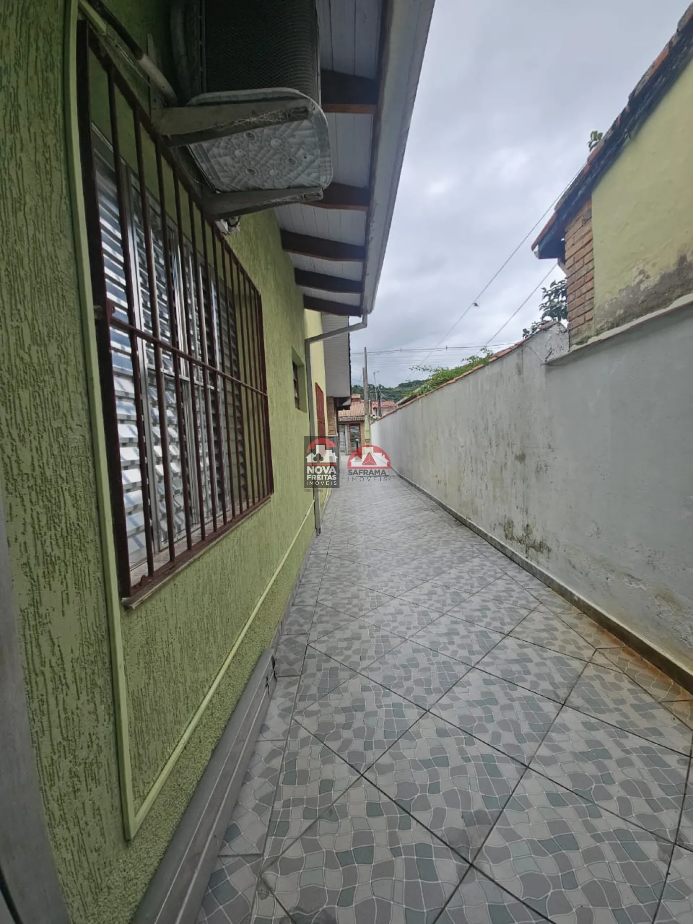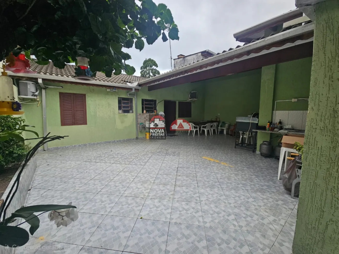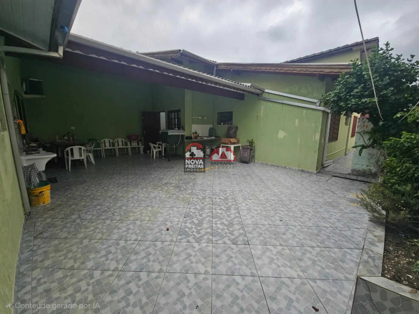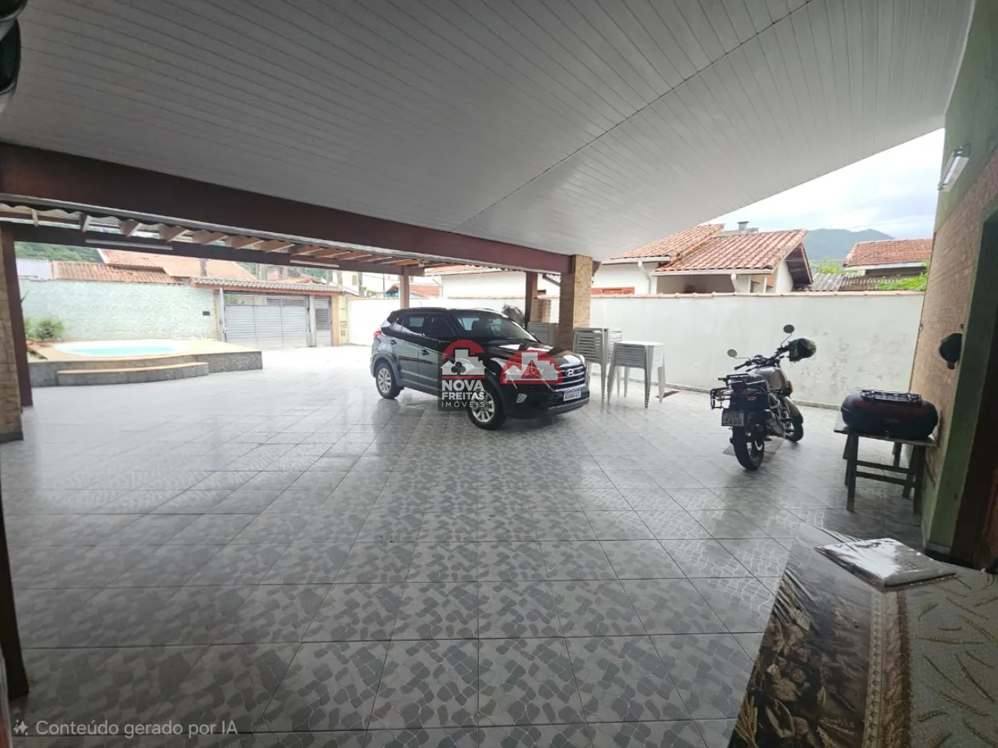 Varanda grande na frente, coberta, com espaço para 4 carros