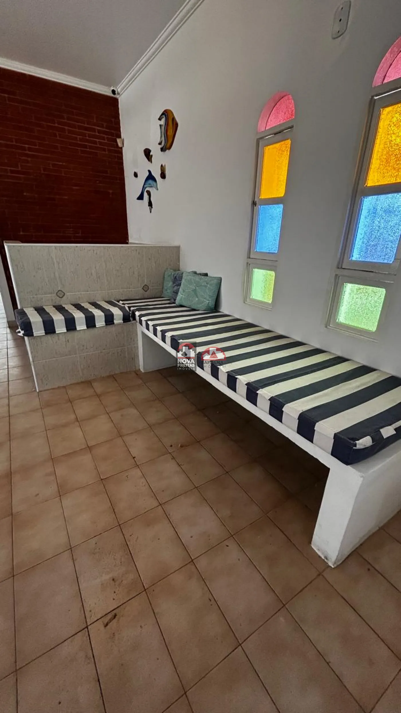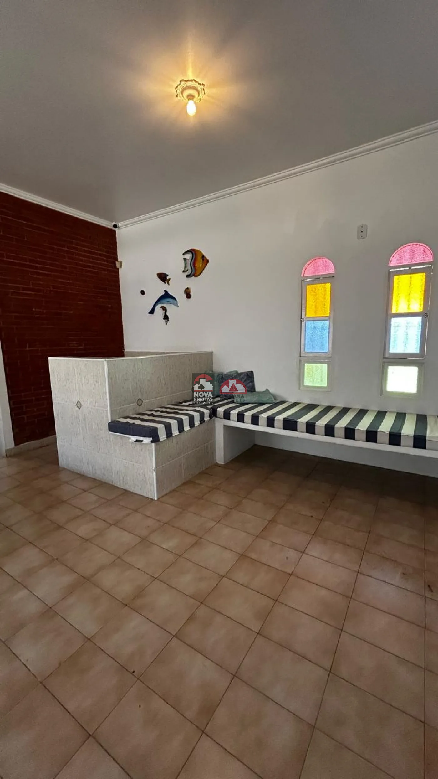 Sofá, camas e armários das suítes em alvenaria (não removíveis)
