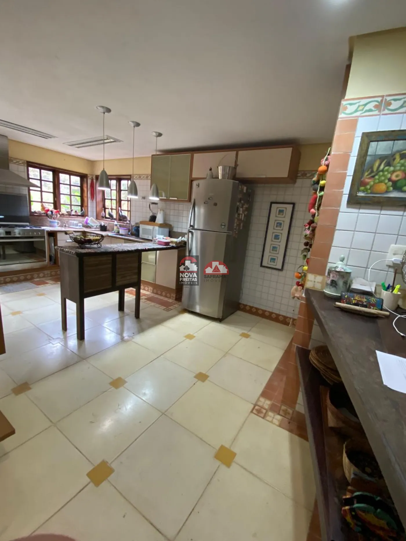 Mobiliada, com 4 suítes, 5 dormitórios, 4 salas, 5 vagas, suíte para empregado, quintal, área verde, escritório, cozinha, dispensa, 200 metros da praia.