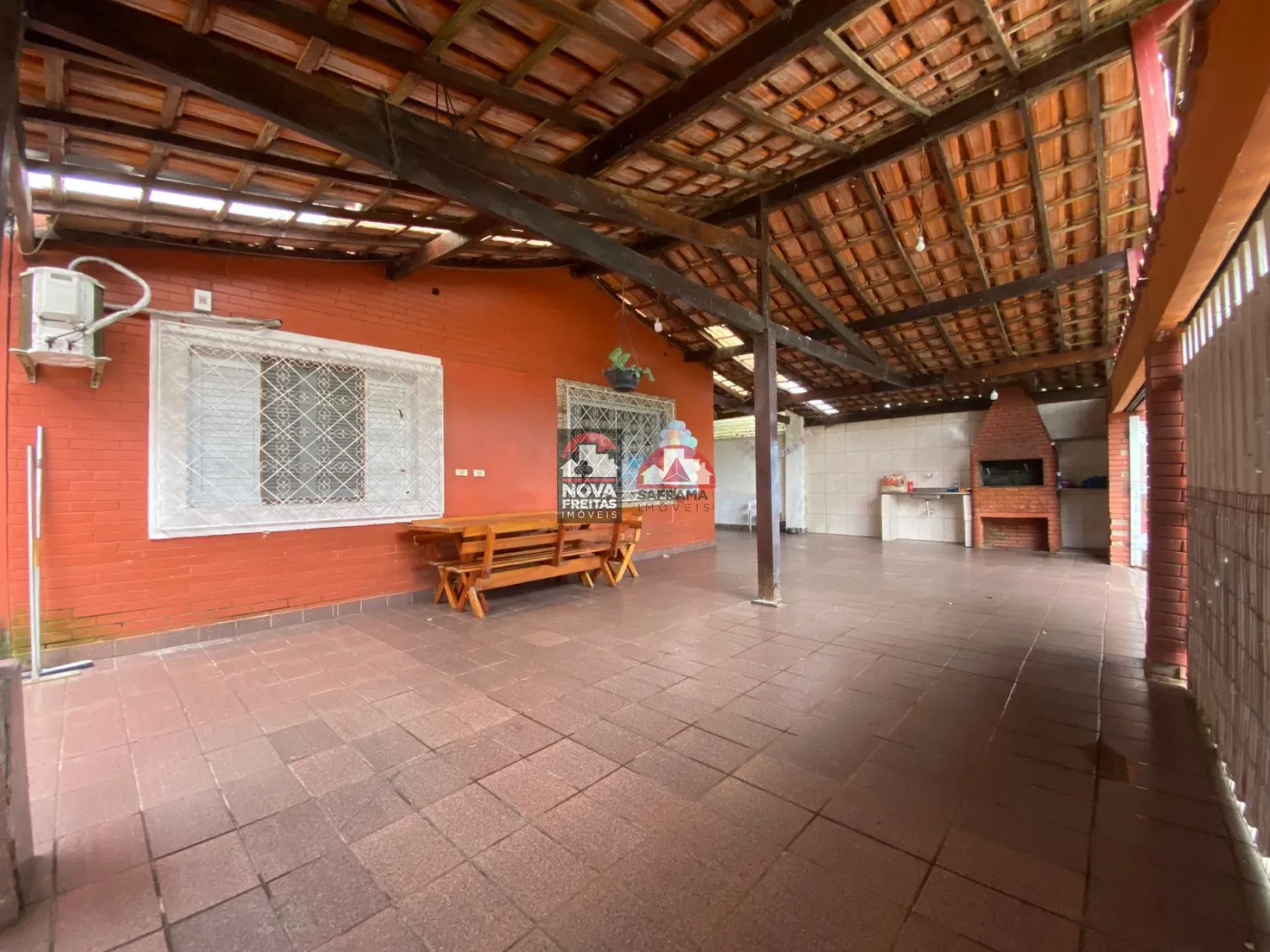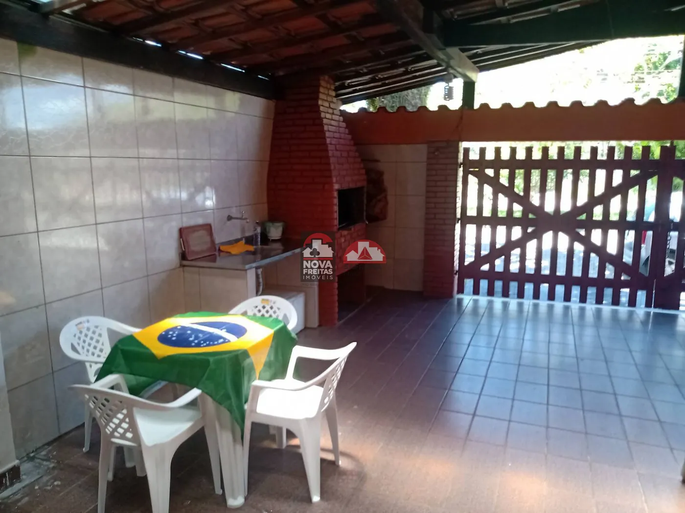 Entre os diferenciais, a casa conta com varanda e varanda gourmet, churrasqueira, ar-condicionado, área de serviço e aceita PET