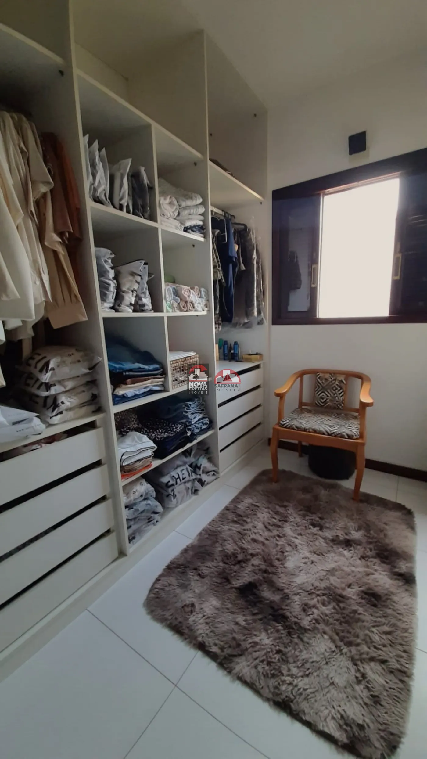 Ao entrar, você será recebido por uma ampla sala com pé direito de 6 metros, que garante uma sensação de espaço e luminosidade. A copa e cozinha são planejadas e totalmente equipadas, assim como a lavanderia, que também conta com móveis planejados. A suíte principal dispõe de um closet planejado, oferecendo funcionalidade e organização.