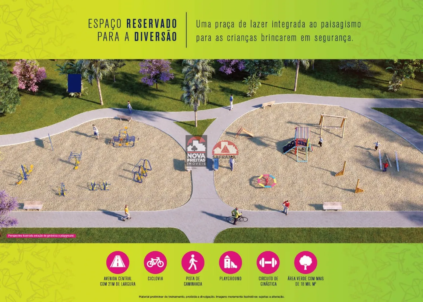 Terreno em loteamento aberto com pista de caminhada, play e academia ao ar livre.