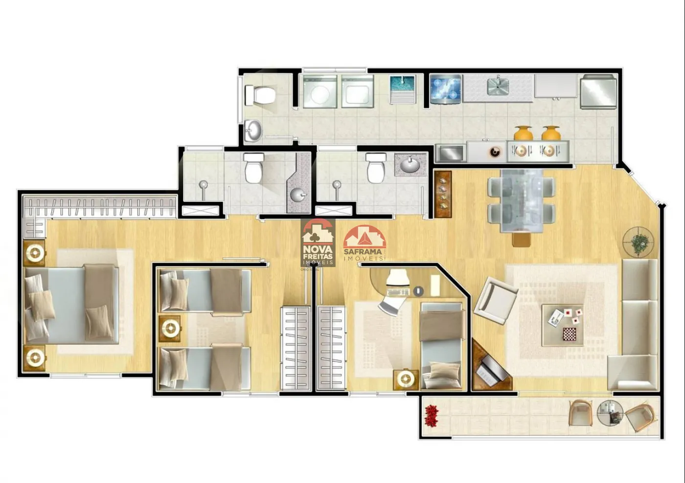 - Dormitórios: 03, sendo 01 suíte