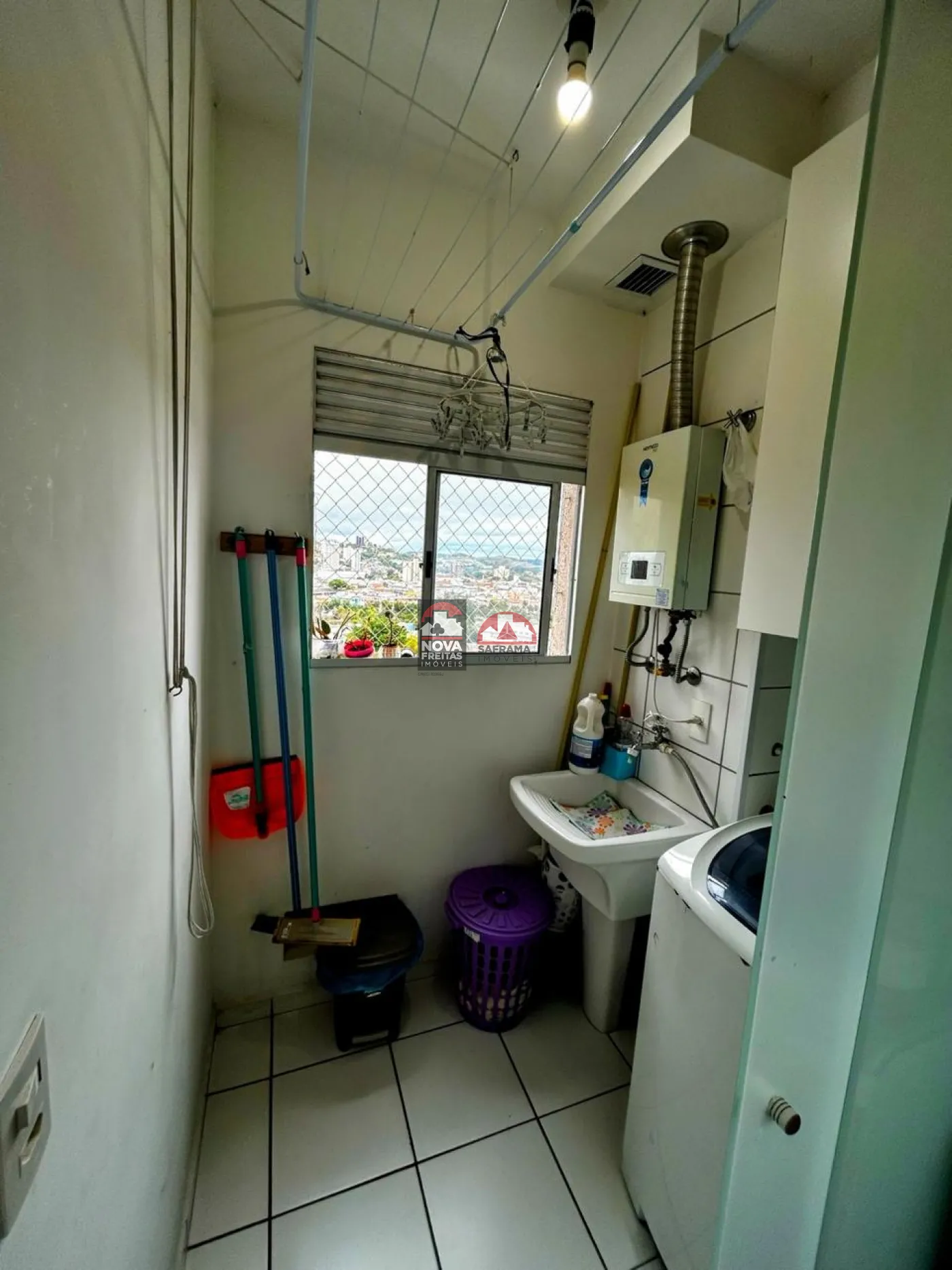 Área de serviço com fechamento em vidro, prática e bem ventilada