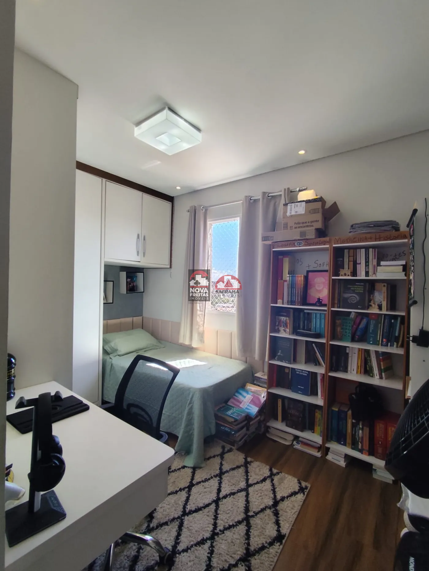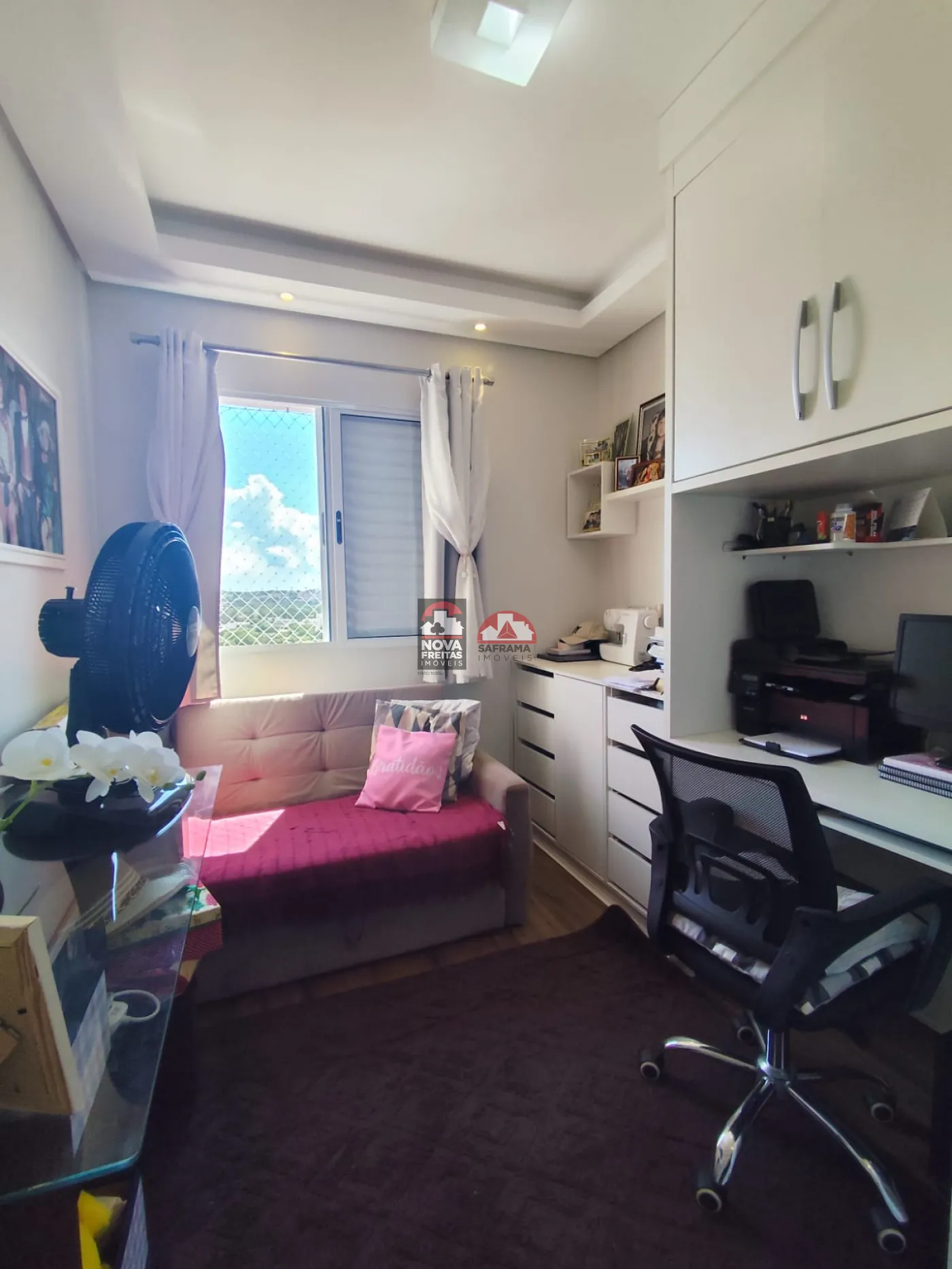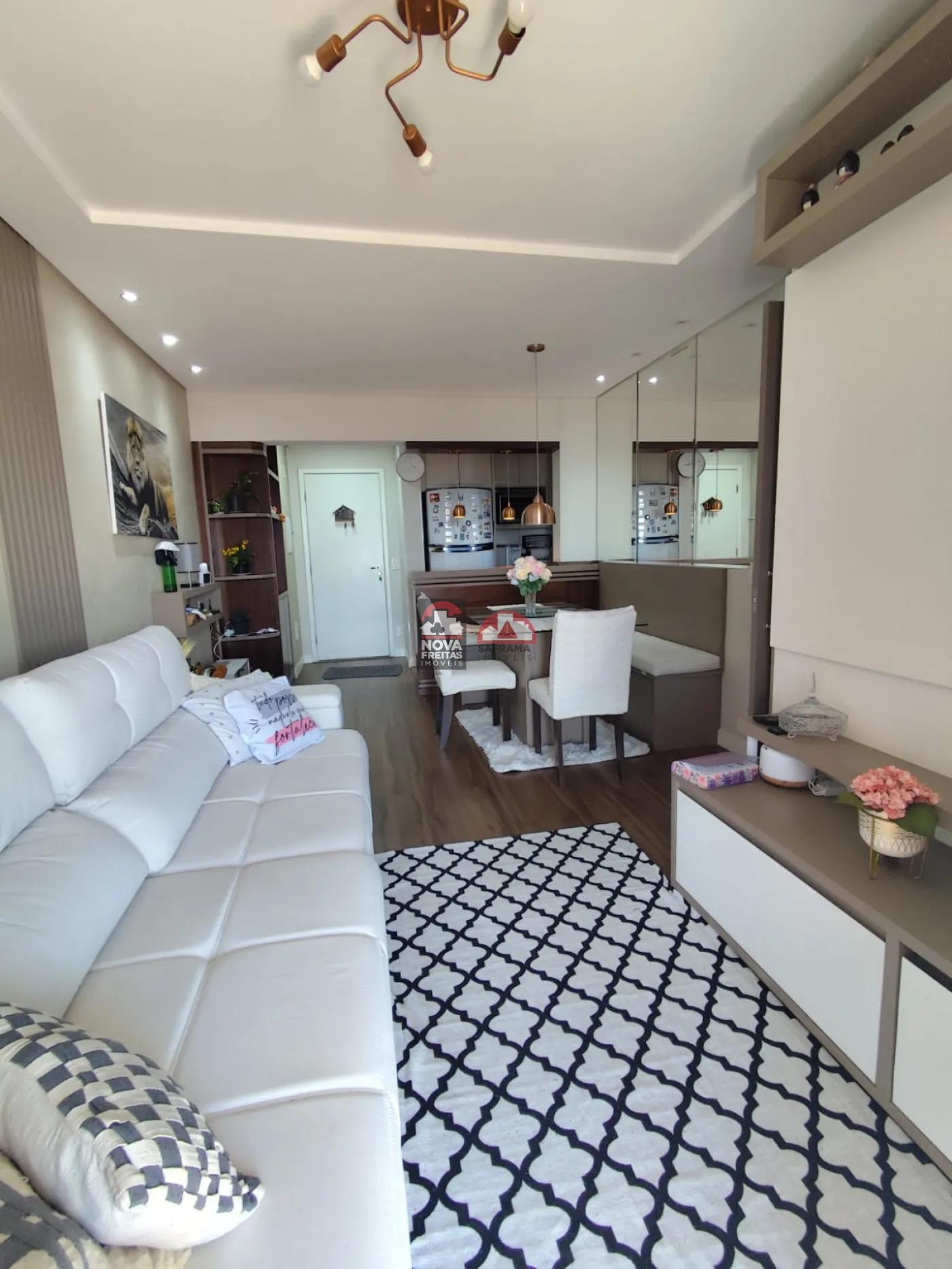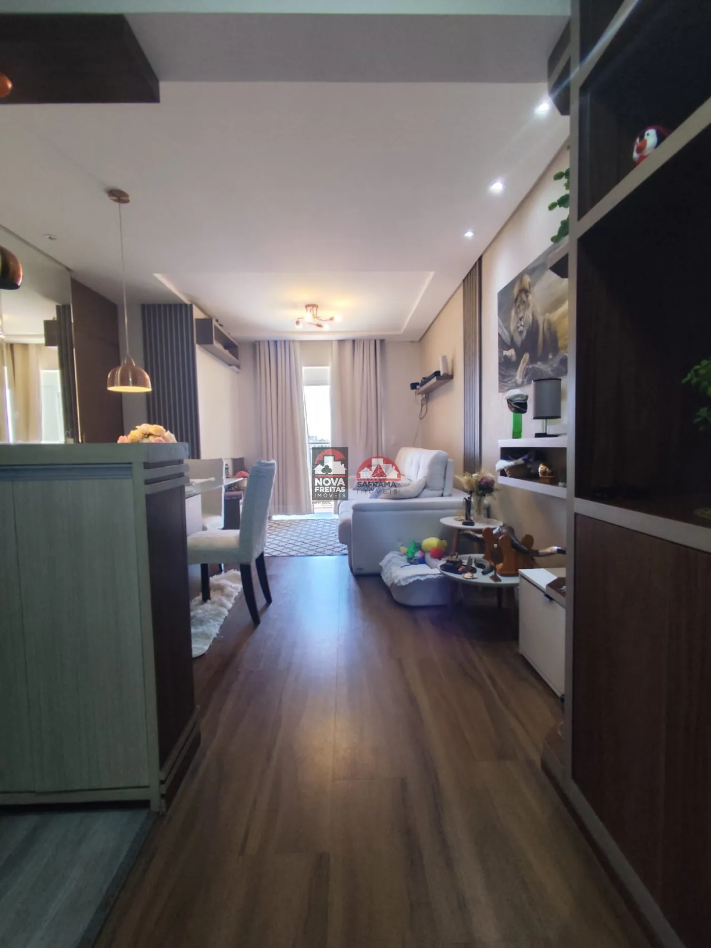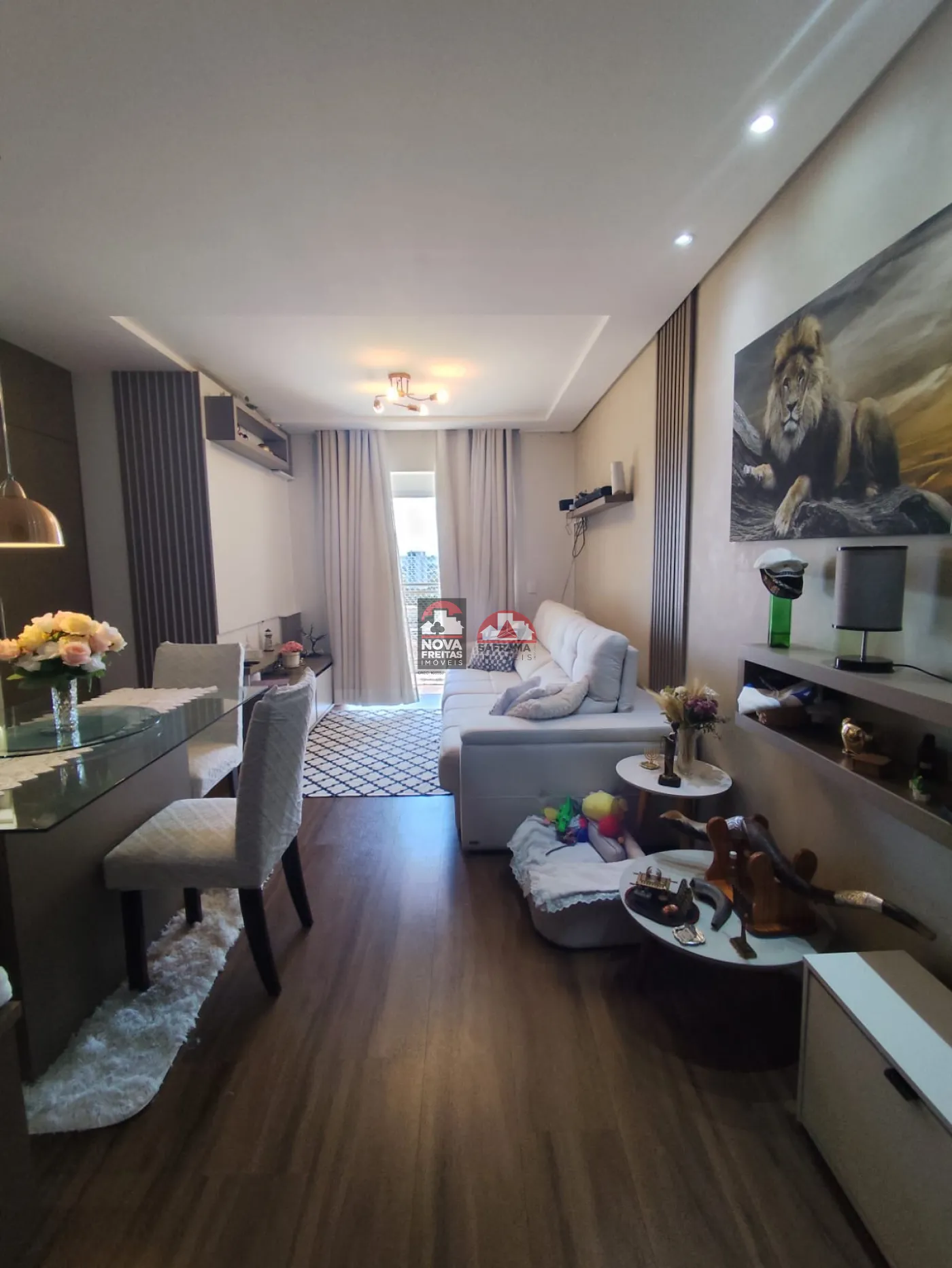 O imóvel conta com 3 dormitórios com armários planejados, sendo 1 suíte, além de 2 banheiros com armários, garantindo funcionalidade e organização no dia a dia. A sala é ampla e bem iluminada, integrada à varanda, ideal para momentos de descanso.