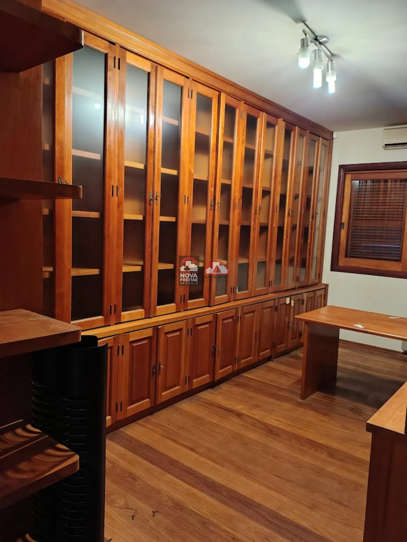 - Mobiliado com geladeira, máquina de lavar, painel de televisão, estante com muitos livros na biblioteca, sofá reclinável na sala de TV