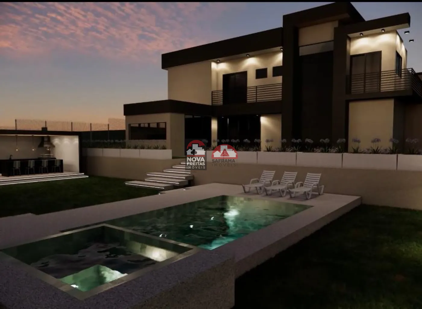 Um imóvel de alto padrão, amplo, confortável e com excelente projeto arquitetônico, ideal para quem busca qualidade de vida em meio à natureza e segurança. Características do imóvel: Terreno: 1.000 m² Área construída: 420 m² 2 vagas de garagem cobertas 4 dormitórios (sendo 2 suítes) 1 banheiro americano Salas amplas e integradas: TV, estar, jantar e piano Cozinha espaçosa com despensa Área de serviço funcional Mezanino com área de estar e bancada Terraço frontal com fechamento em vidro Escritório com piso superior 1 closet Varanda no piso térreo integrada à área gourmet com churrasqueira e banheiro Jacuzzi com ducha Corredores laterais com 2,5 m de largura cada Pergolado nos fundos Sistema fotovoltaico instalado Sistema de alarme e segurança Residência com acabamento de excelente qualidade, ambientes amplos e bem iluminados, proporcionando conforto e elegância. Localizada em condomínio fechado com infraestrutura completa, muito verde e tranquilidade. Agende uma visita e encante-se com esse sobrado exclusivo no Condomínio Santa Bárbara! Imobiliária Nova Freitas, seu sonho começa aqui!