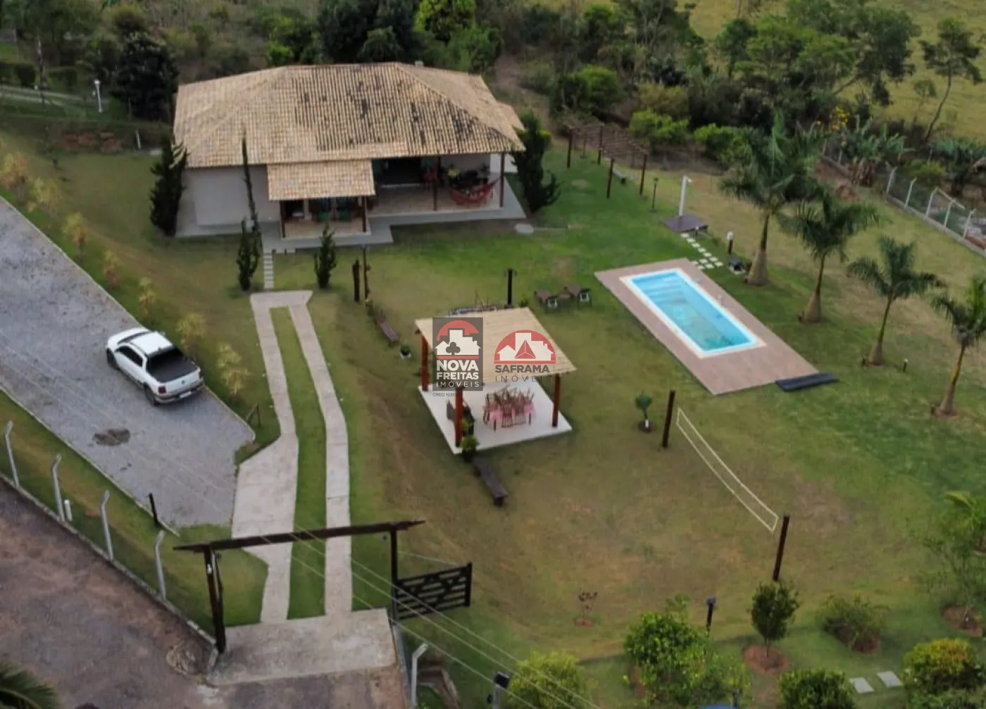 - Área Total: 3.200 m², totalmente cercada com alambrado e cerca viva.