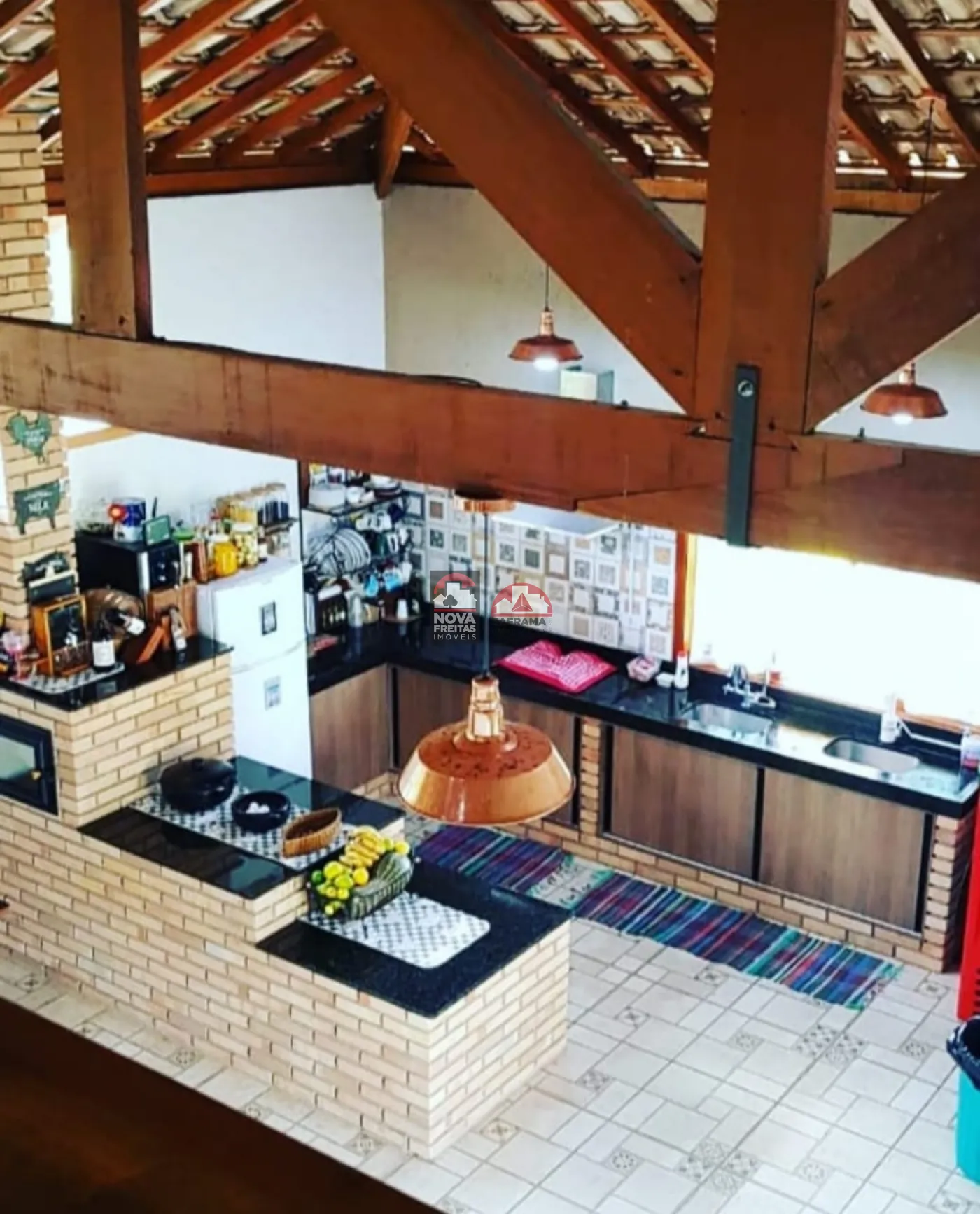 - Área externa com fogão a lenha e churrasqueira, ideal para confraternizações.