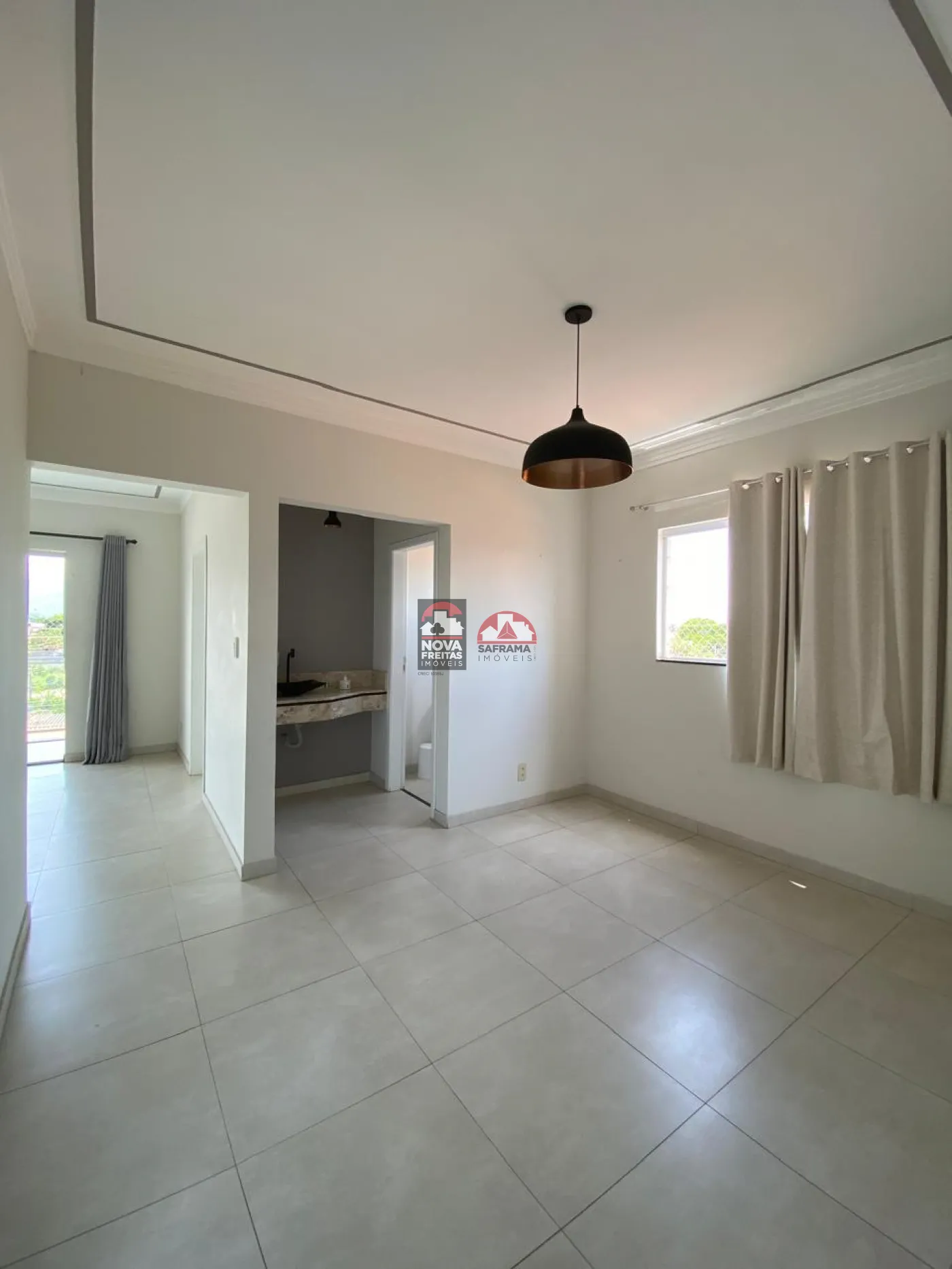 Sala de estar iluminada e arejada