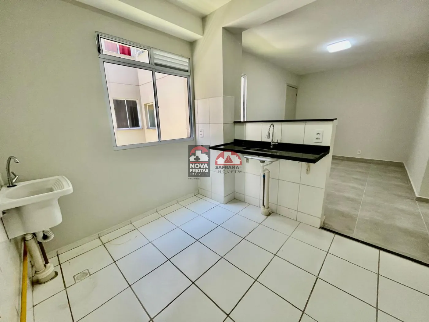 Apartamento com 2 dormitórios, sala espaçosa para dois ambientes, banheiro social, cozinha funcional, área de serviço arejada e bem iluminada.