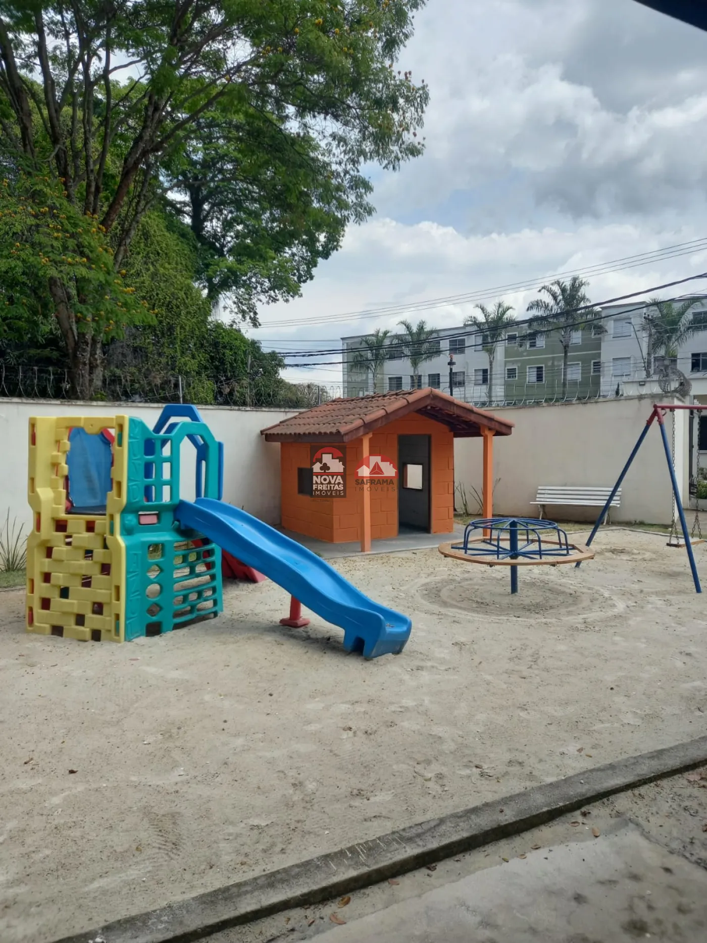O condomínio oferece salão de festas, churrasqueira e playground, perfeito para sua família.