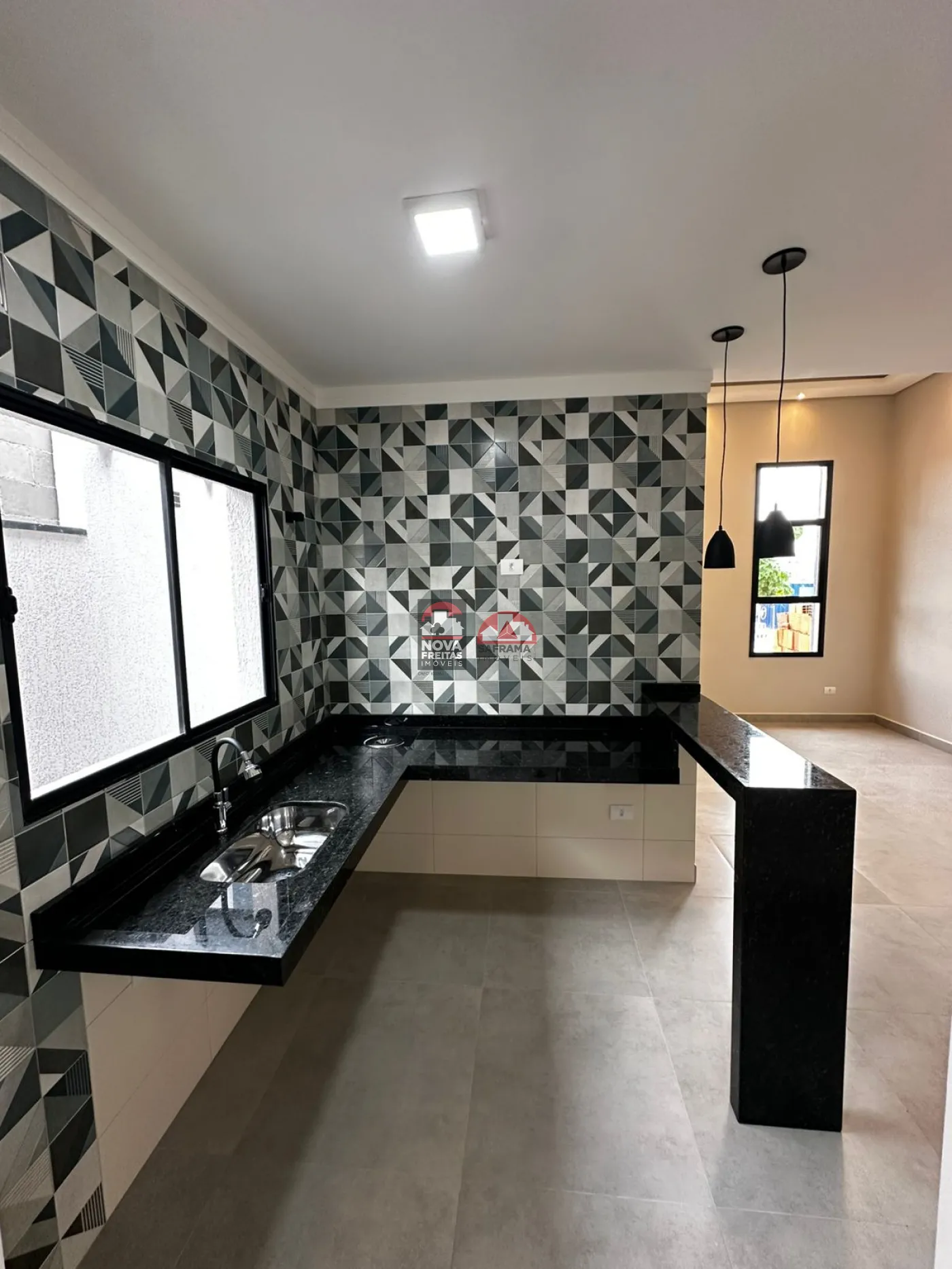 Cozinha americana integrada à sala de jantar;
