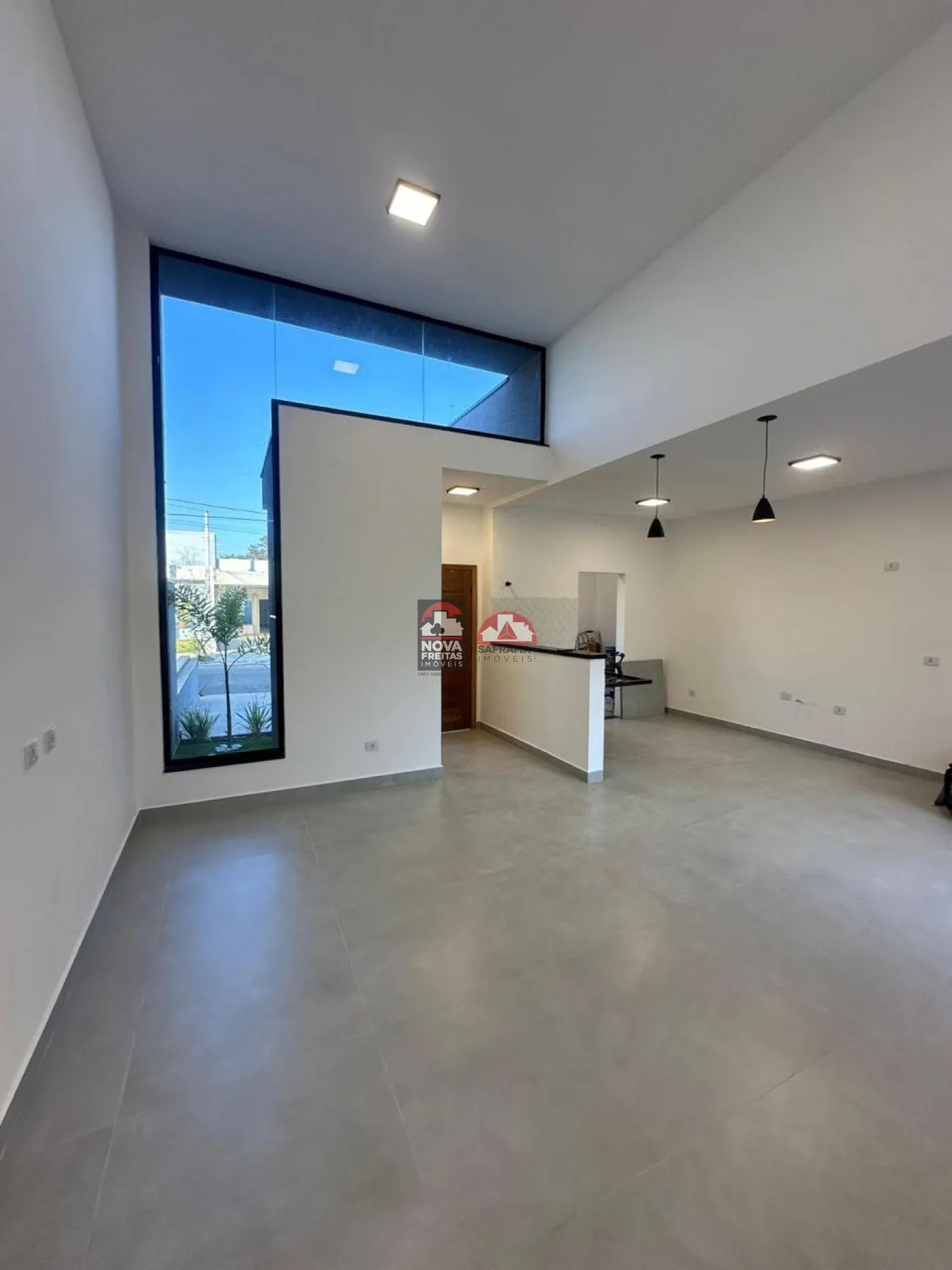 A cozinha integrada à sala proporciona um ambiente amplo e agradável, ideal para momentos em família e entre amigos. O pé direito alto traz ainda mais sofisticação e luminosidade aos ambientes.