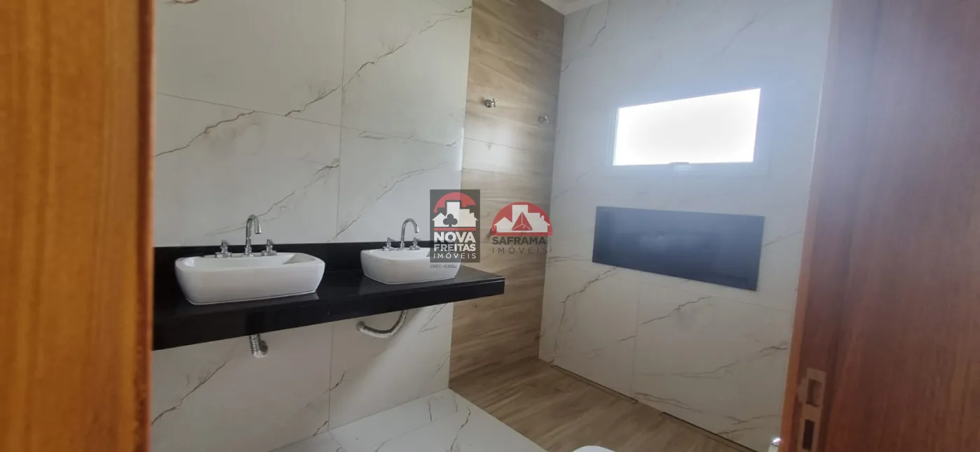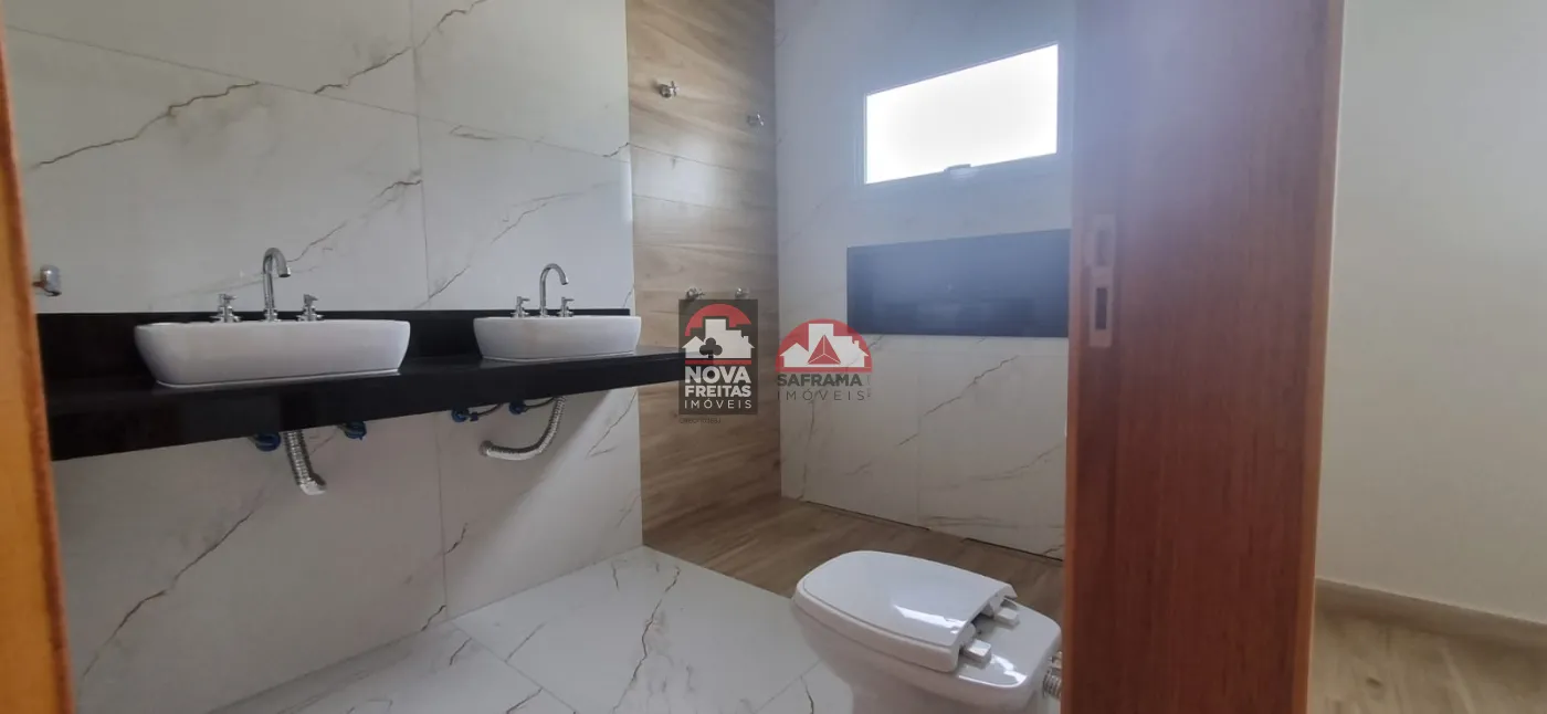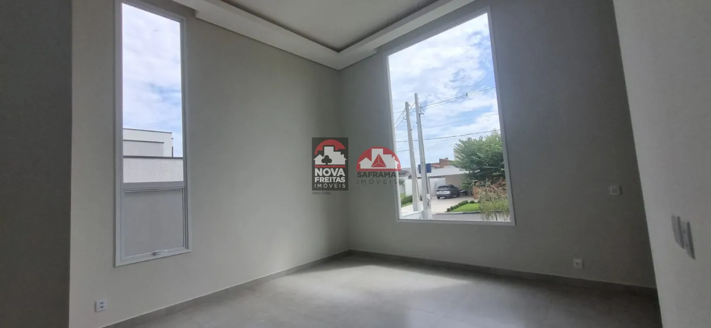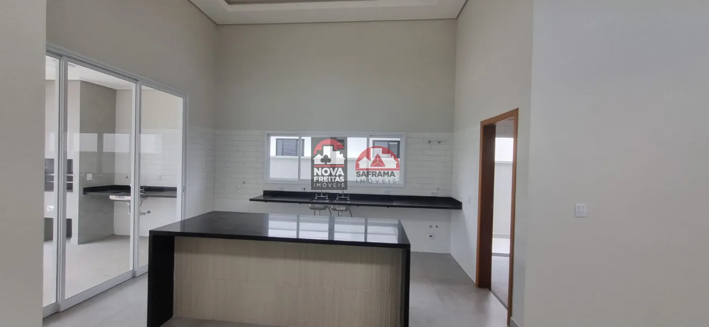 Casa nova térrea em condomínio próxima ao Shopping, com 1 vaga de garagem coberta, 1 sala de estar, sala de jantar, área de serviço, cozinha e 1 área gourmet, 3 suítes sendo 1 com closet, 1 escritório com lavabo, 1 banheiro social, lavabo externo, quintal com piscina.