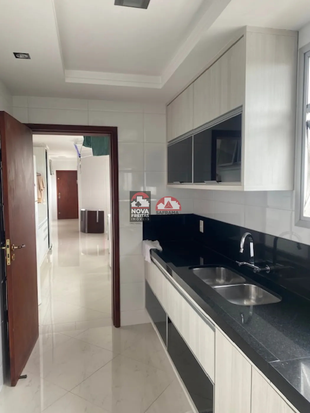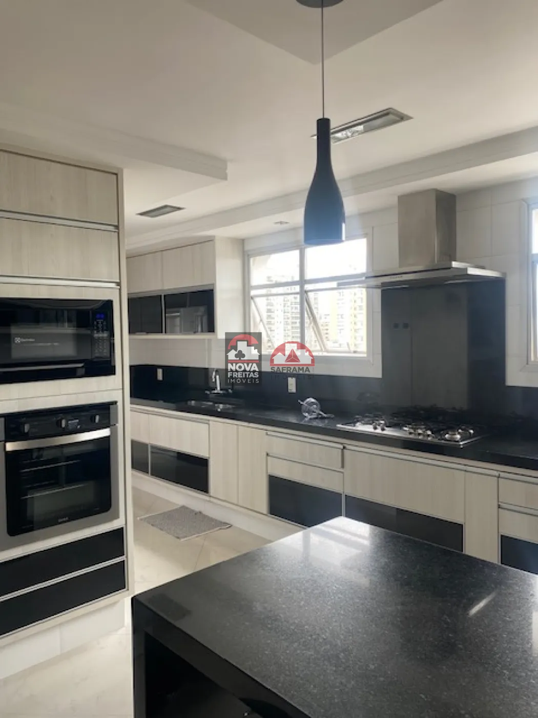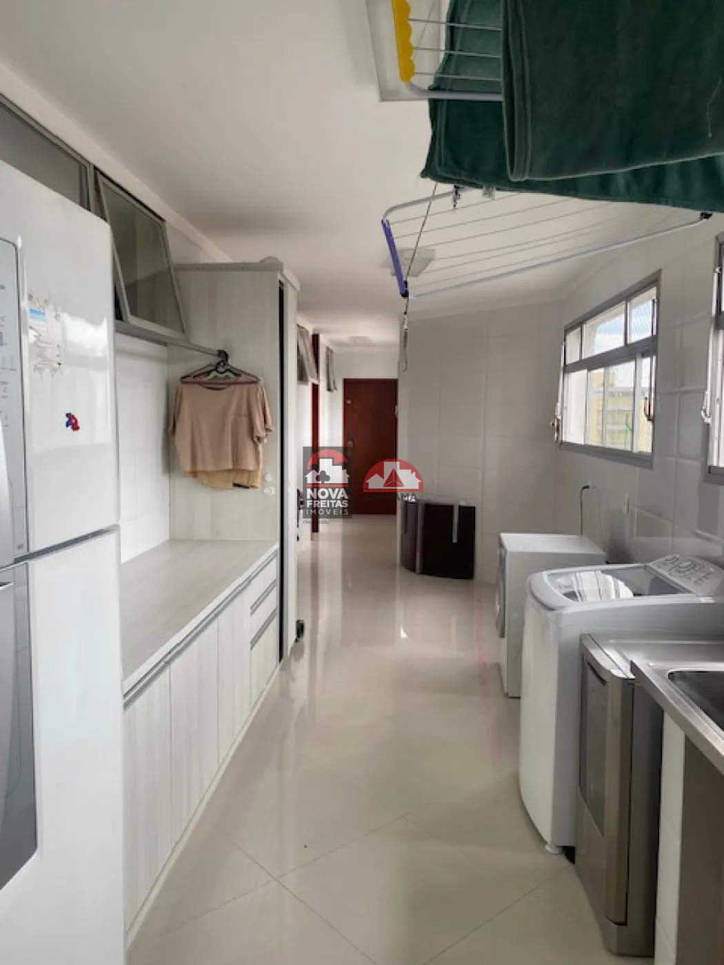 A cozinha é planejada, prática e moderna, e a área de serviço é bem ampla, com despensa e dependência de empregada.