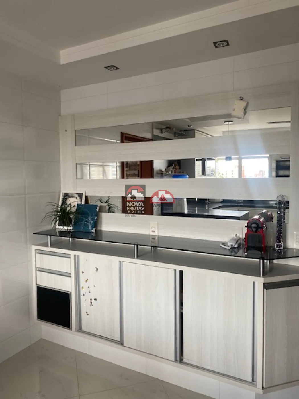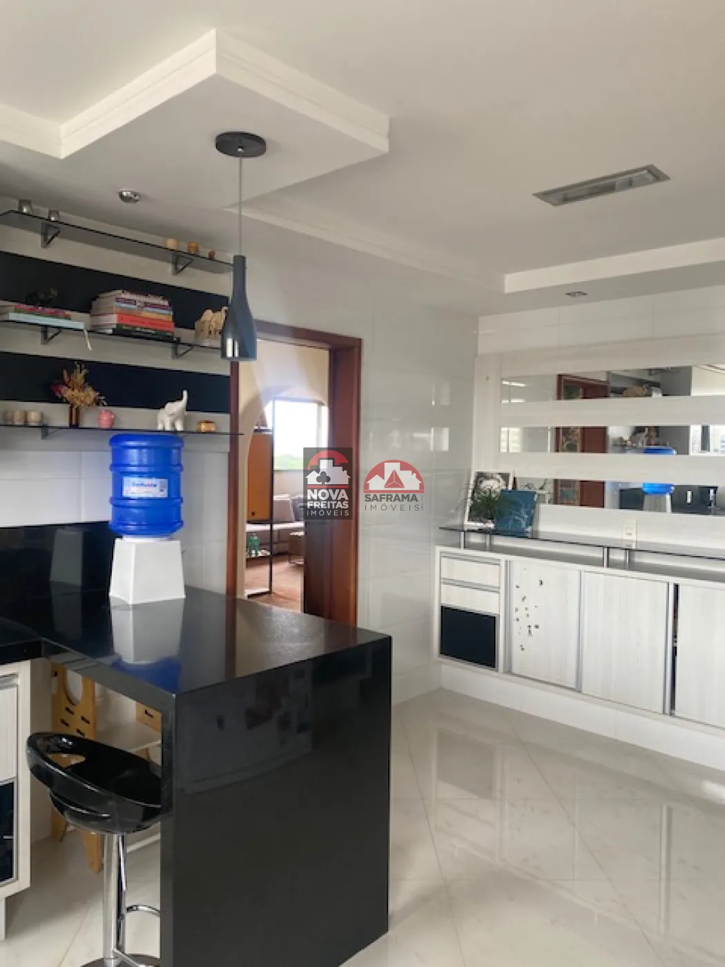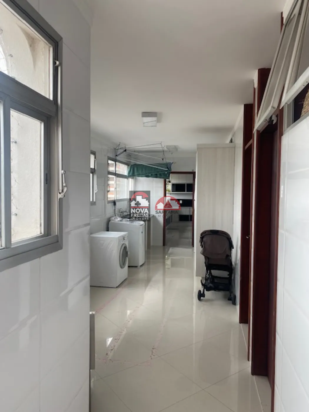 A cozinha é planejada, prática e moderna, e a área de serviço é bem ampla, com despensa e dependência de empregada.
