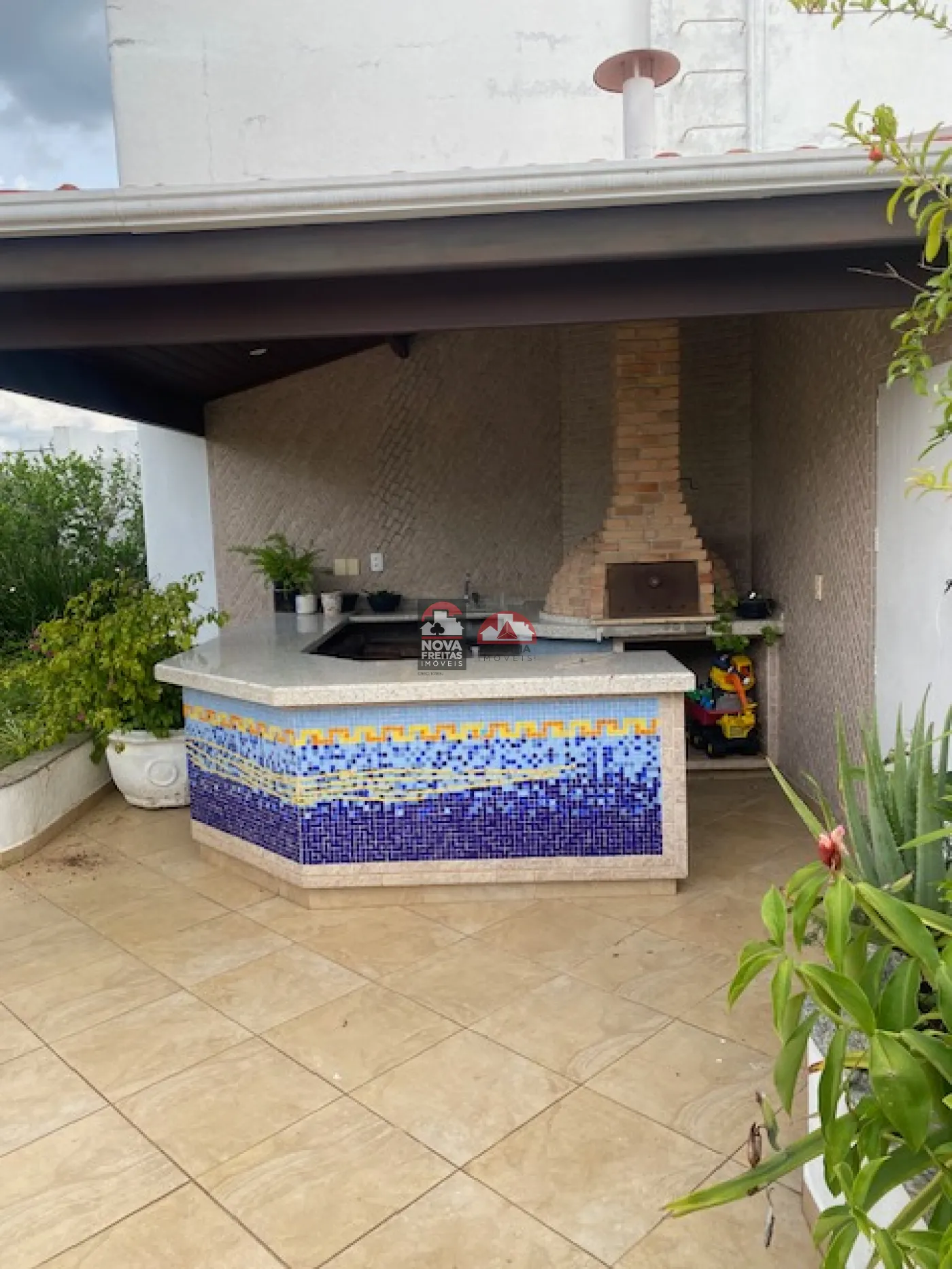 No piso superior tem uma enorme sala de estar, brinquedoteca, 02 banheiros, churrasqueira e uma linda área verde.