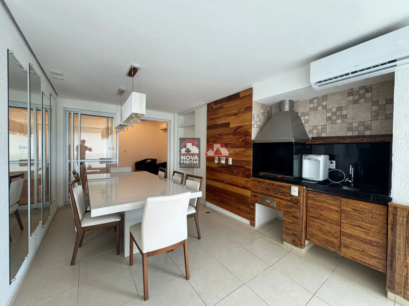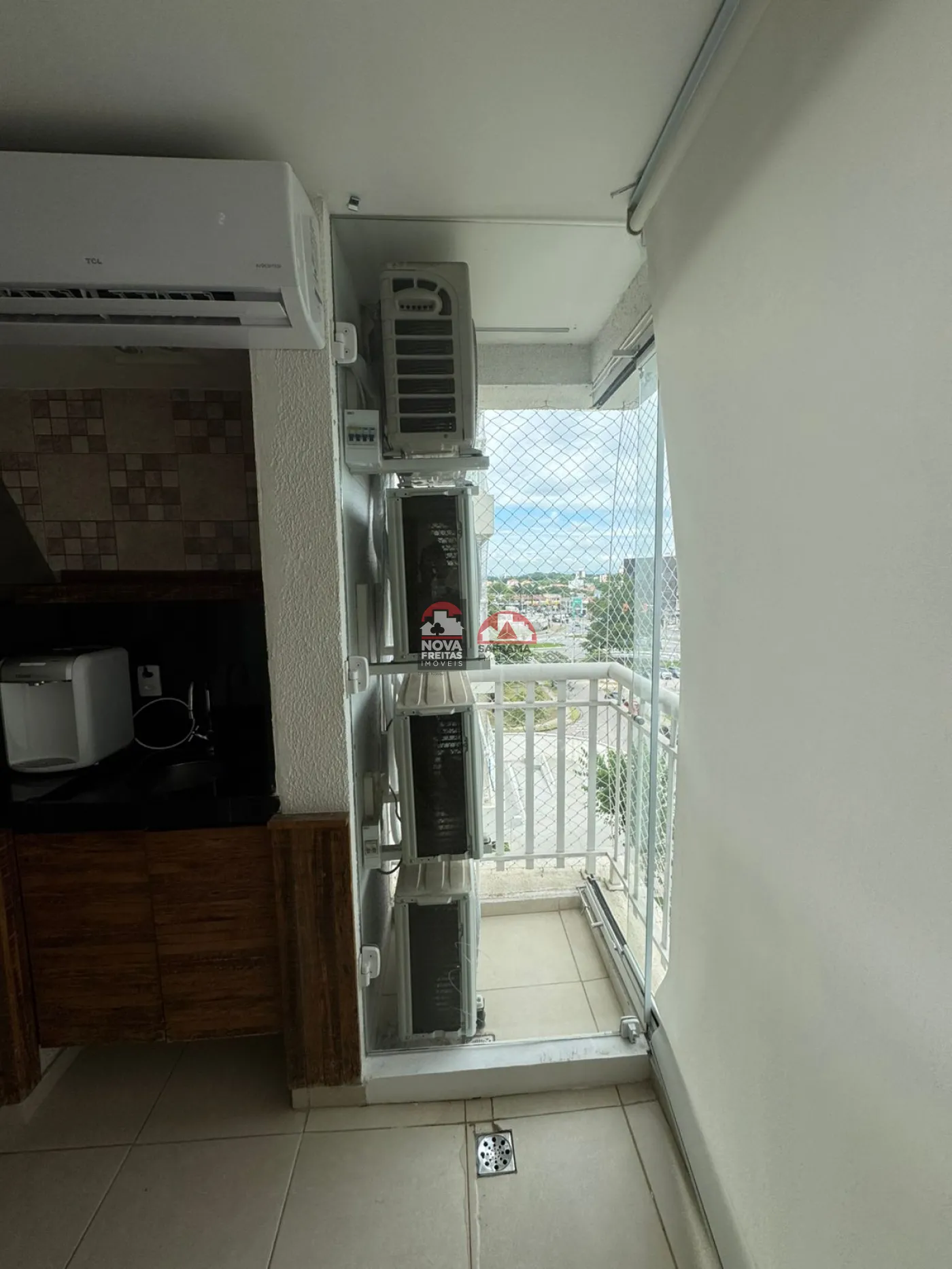 Ar condicionado na sacada, sala e dormitórios