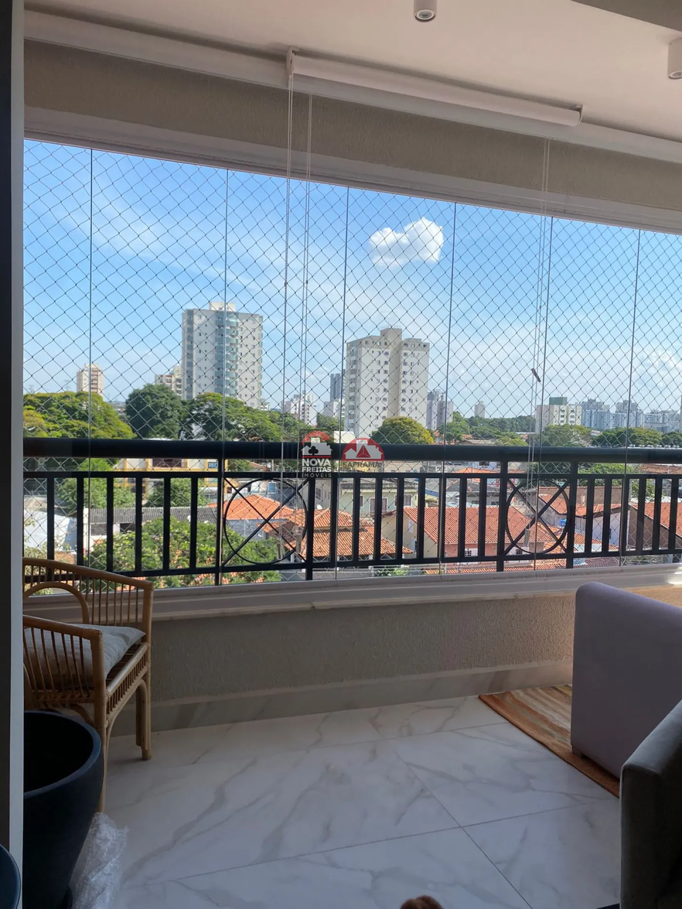 - Varanda com cortina de vidro, ideal para relaxar e apreciar a vista.