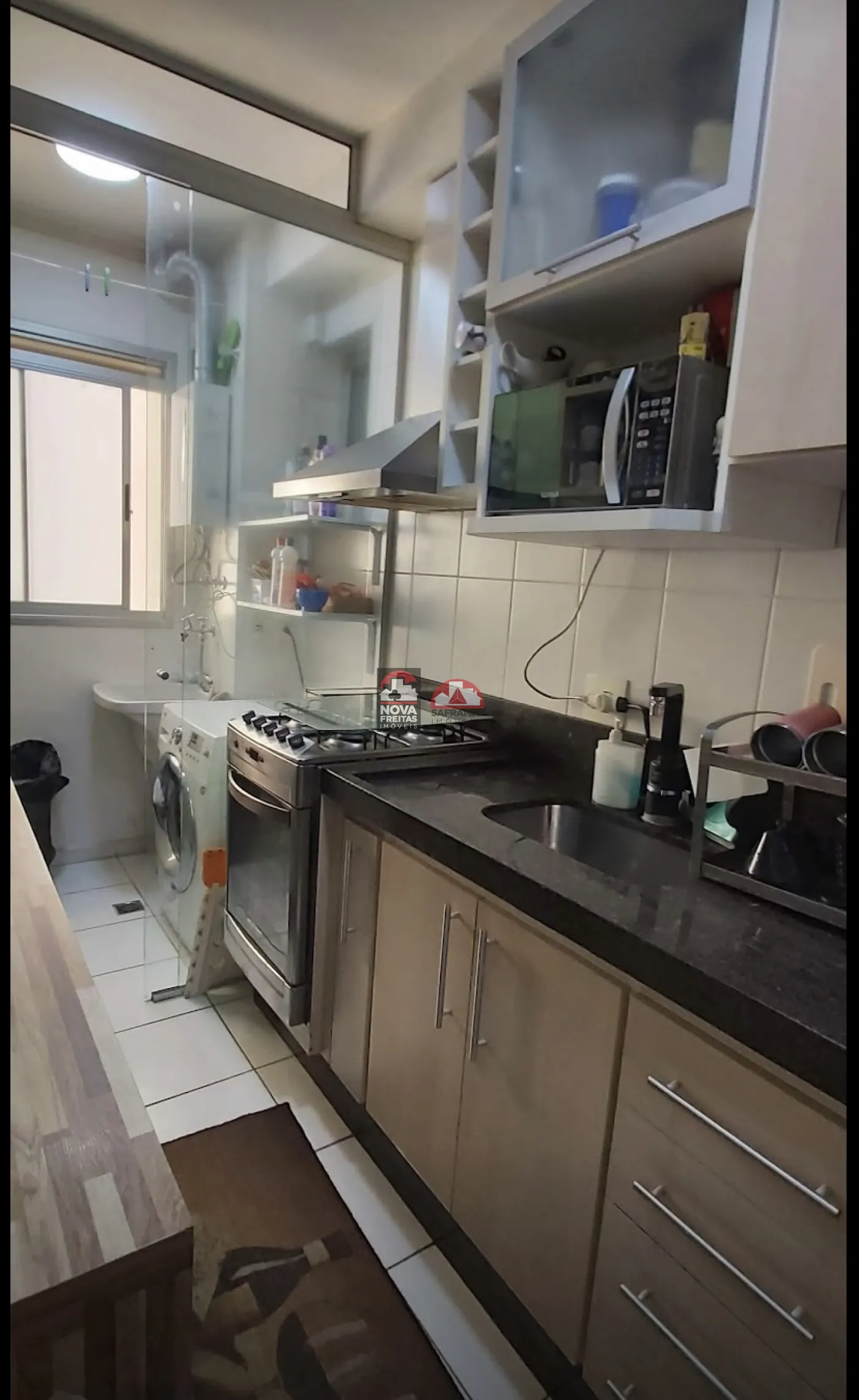 O imóvel conta com 02 dormitórios, sendo uma suíte, ambos com armários planejados de alta qualidade. Possui um banheiro social, uma sala ampla com sacada para momentos de lazer e descanso, e uma cozinha totalmente planejada, integrada à área de serviço. Inclui 01 vaga de garagem.