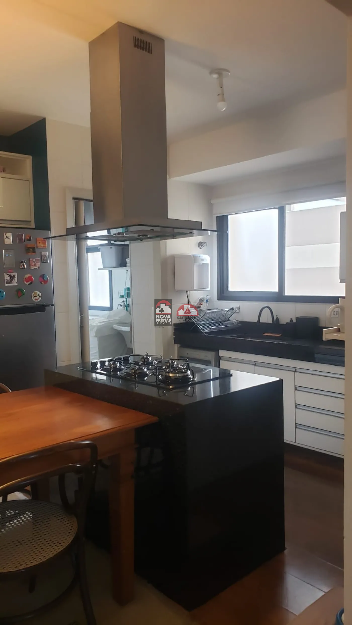 Cozinha espaçosa com armários planejados e cooktop