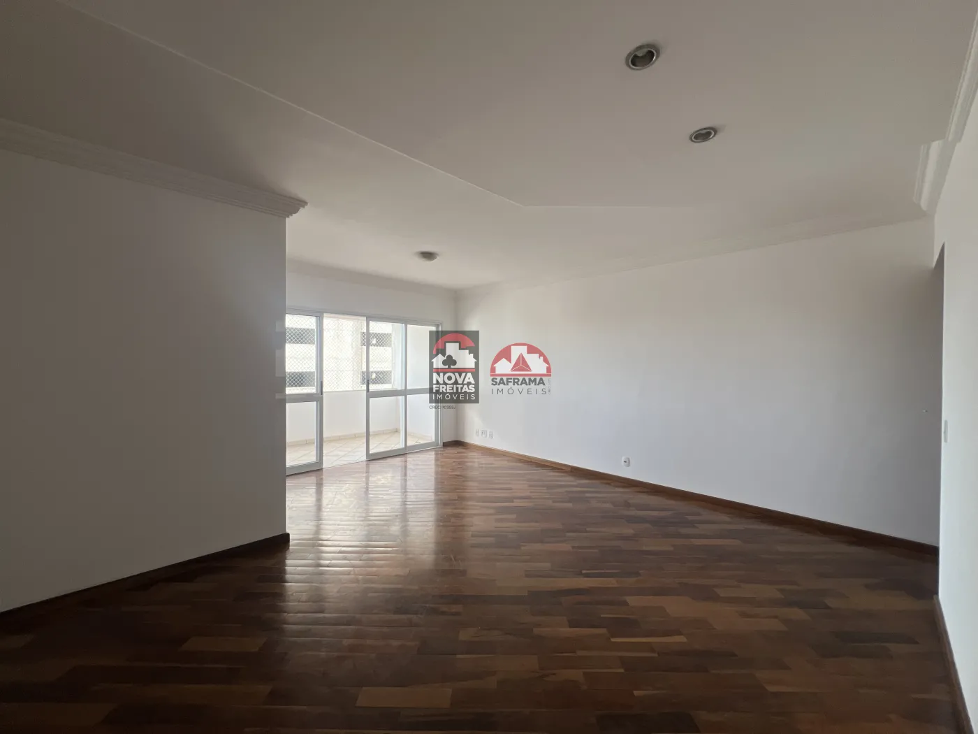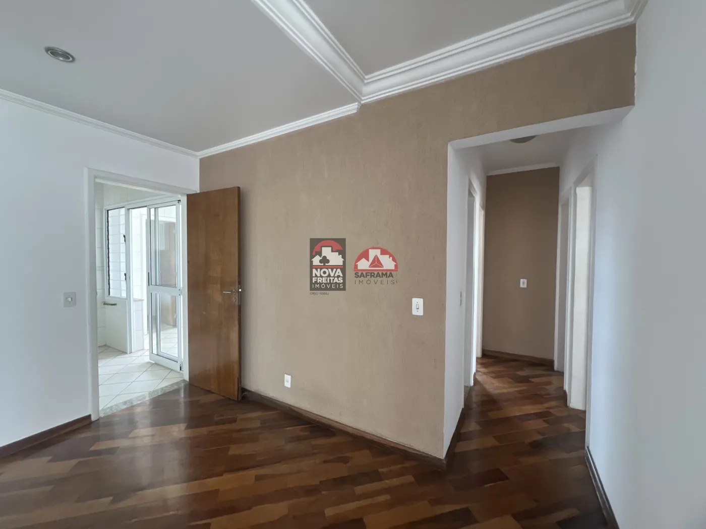 - Piso de madeira e sanca de gesso