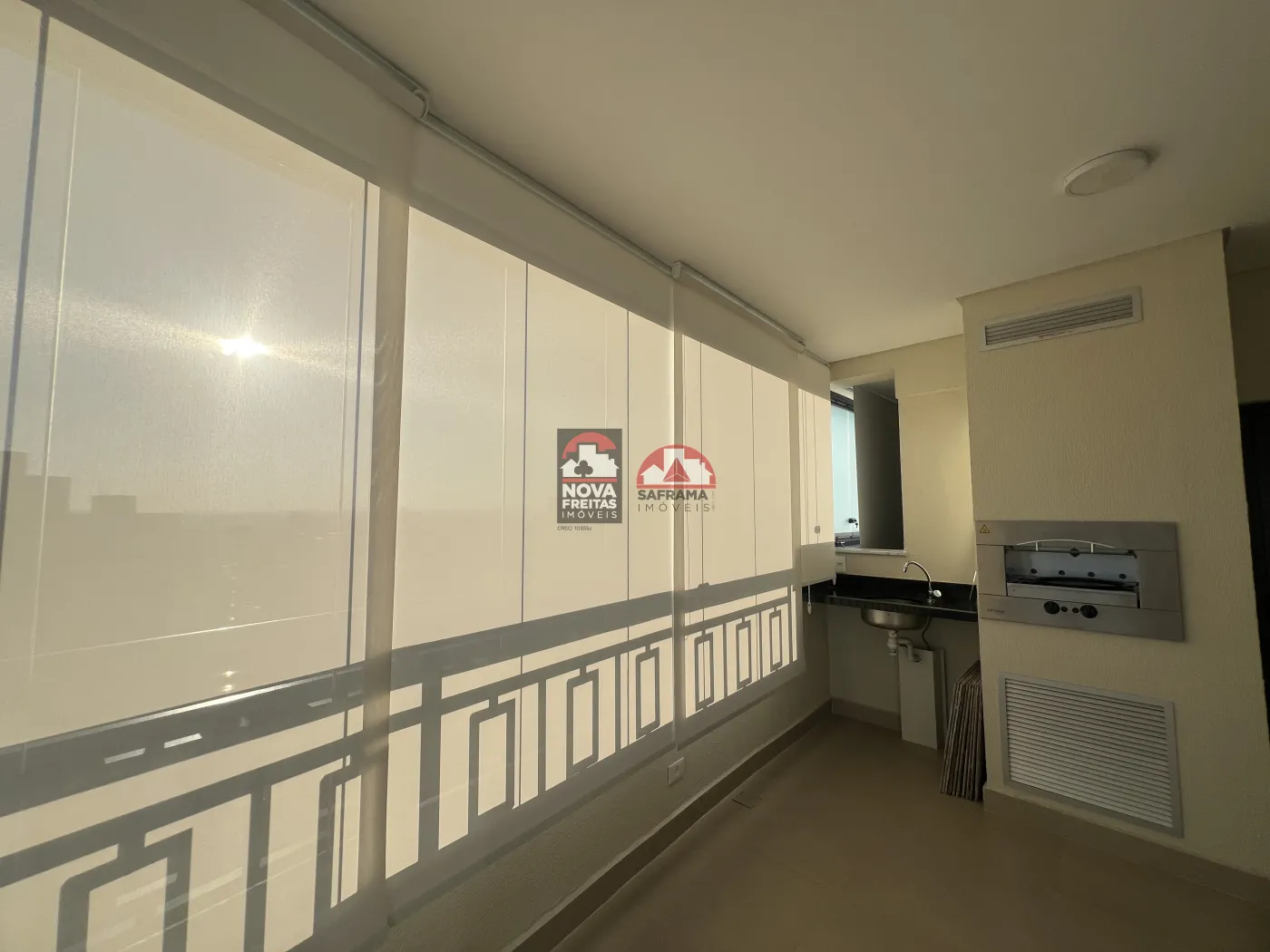 Varanda com ponto de TV e churrasqueira com assadores a gás