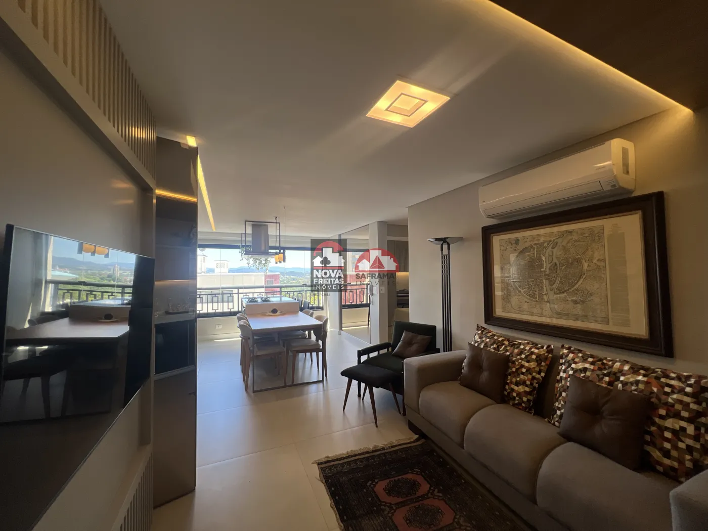 Ar-condicionado instalado no living e suíte.