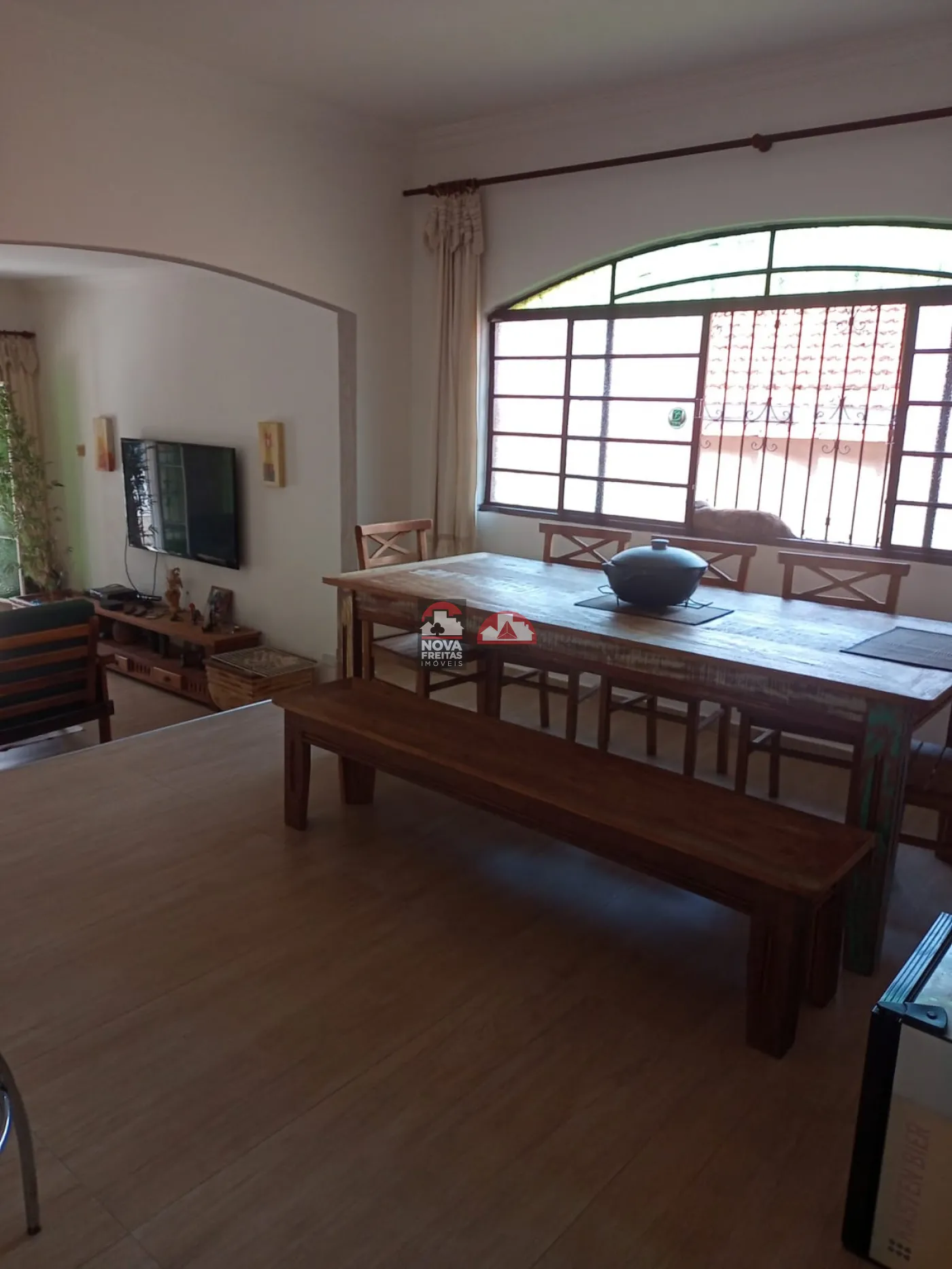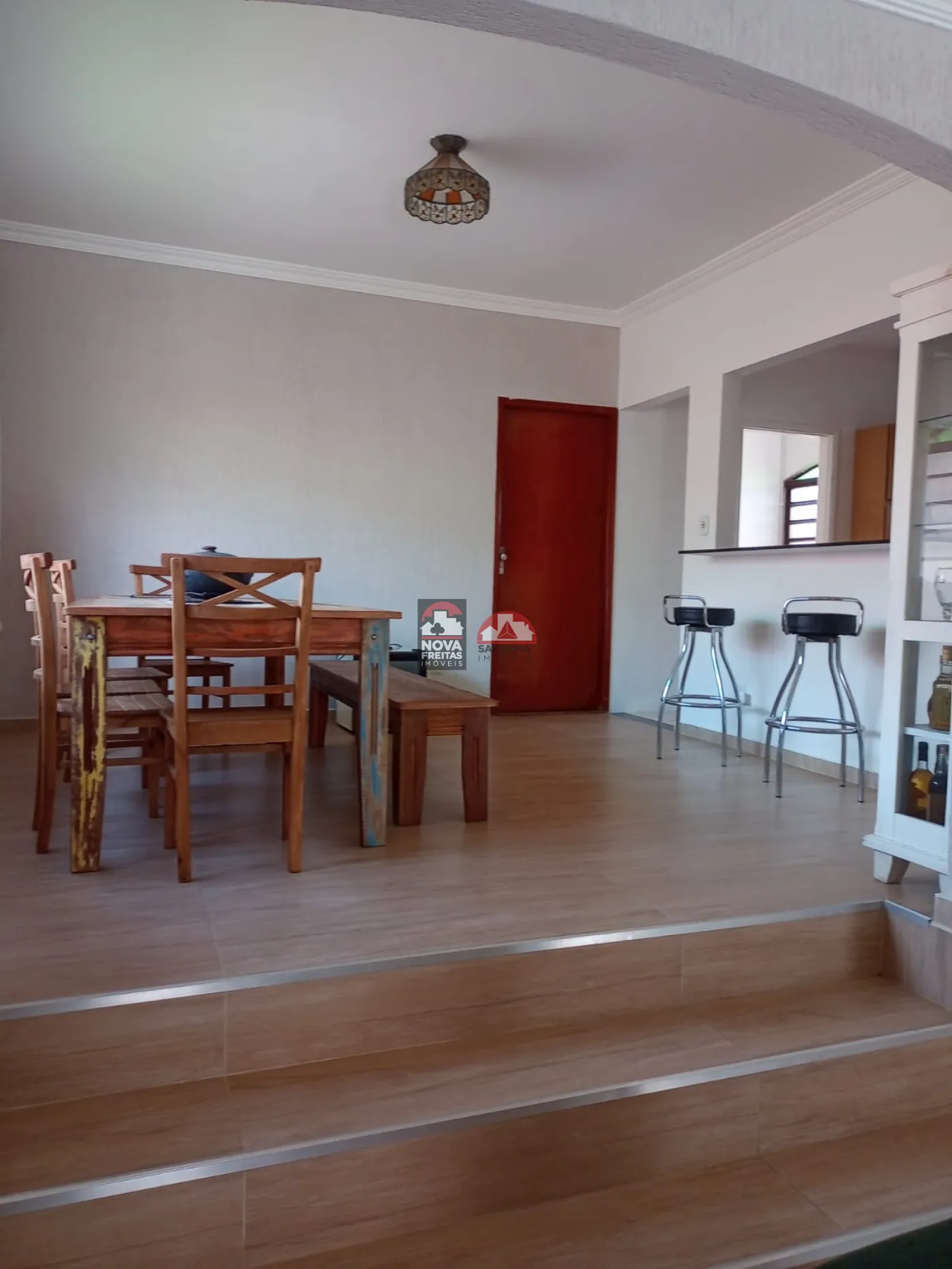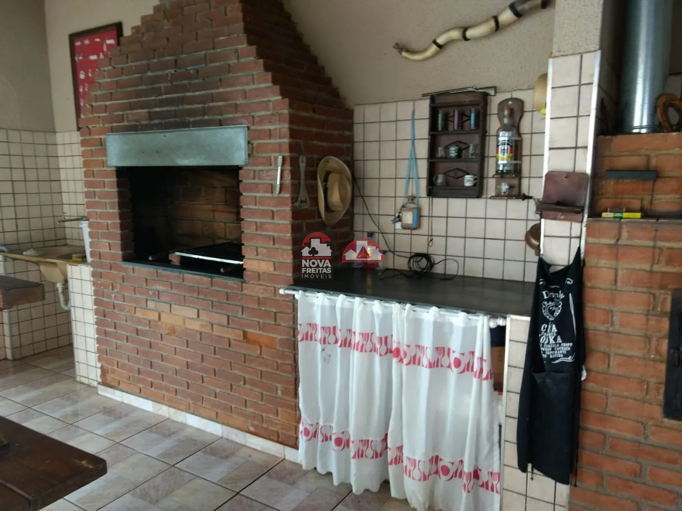 O imóvel conta com armários na cozinha e banheiros e conta ainda com piscina, churrasqueira e forno a lenha.