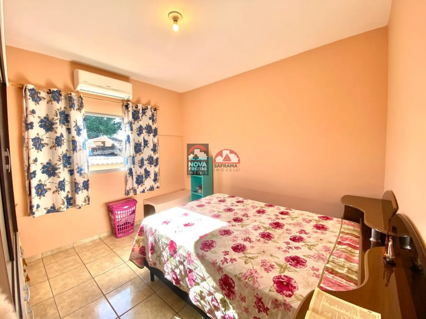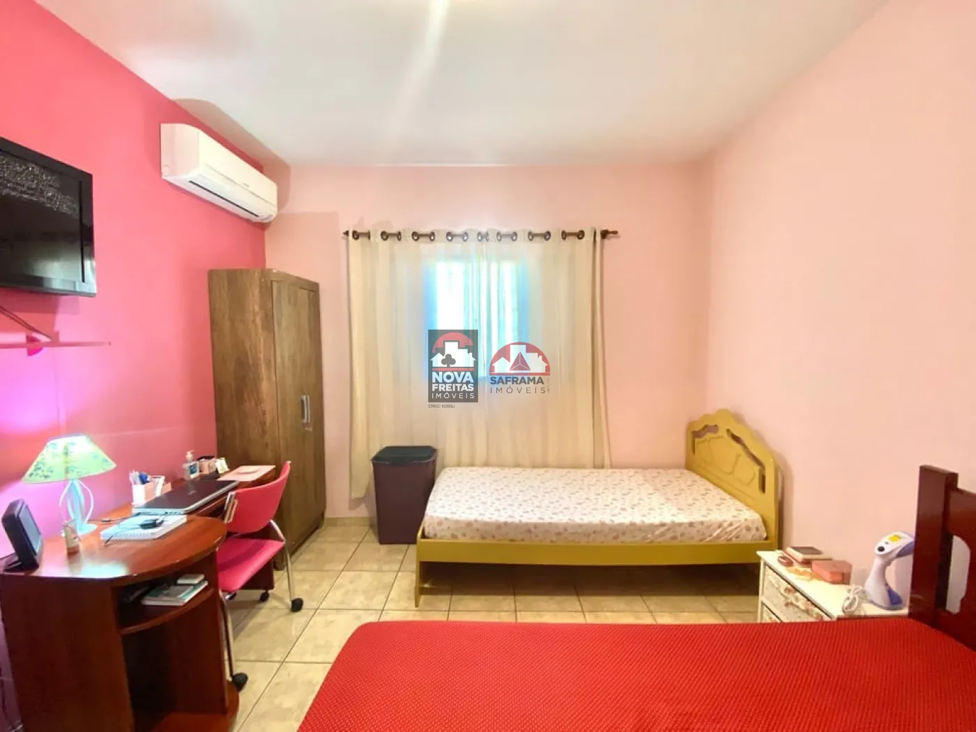 Possui ar-condicionado para maior conforto térmico, além de 2 vagas de garagem. Nos fundos, há um quarto e banheiro, ideal para hóspedes ou uso como escritório ou área de serviço.