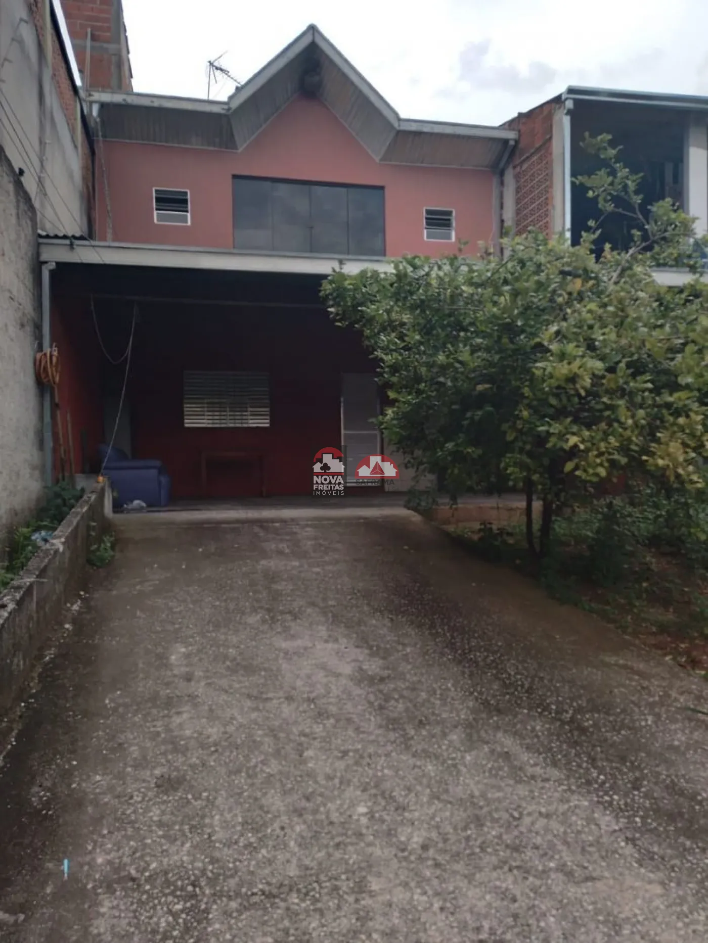 Com 168,38 m² de terreno e 109,35 m² de área construída, o sobrado oferece 5 vagas de garagem, garantindo espaço de sobra para carros, tanto em áreas cobertas quanto descobertas.