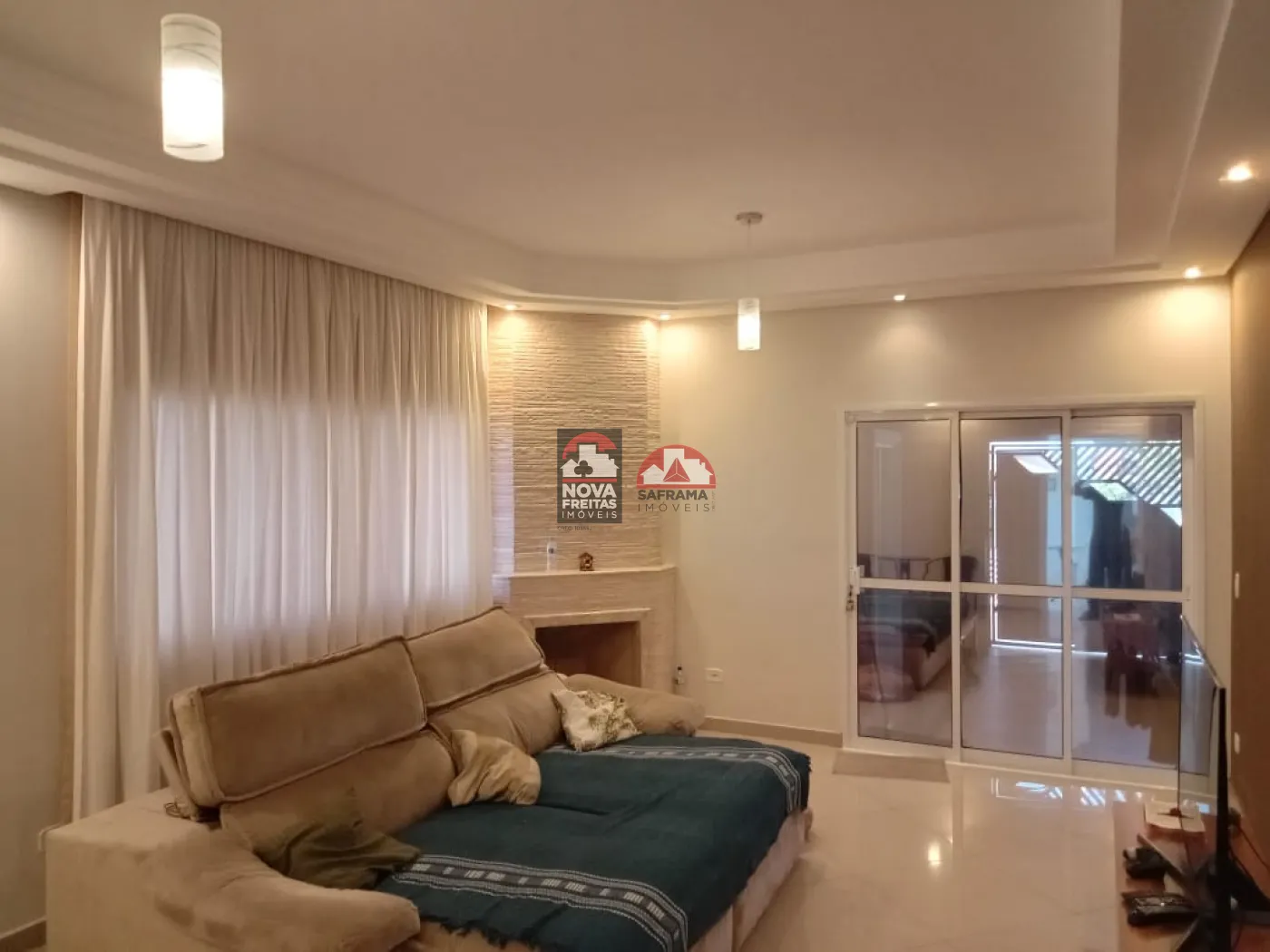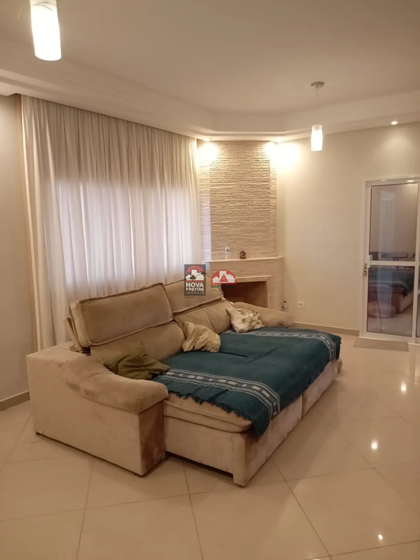 Sala ampla com lareira aconchegante