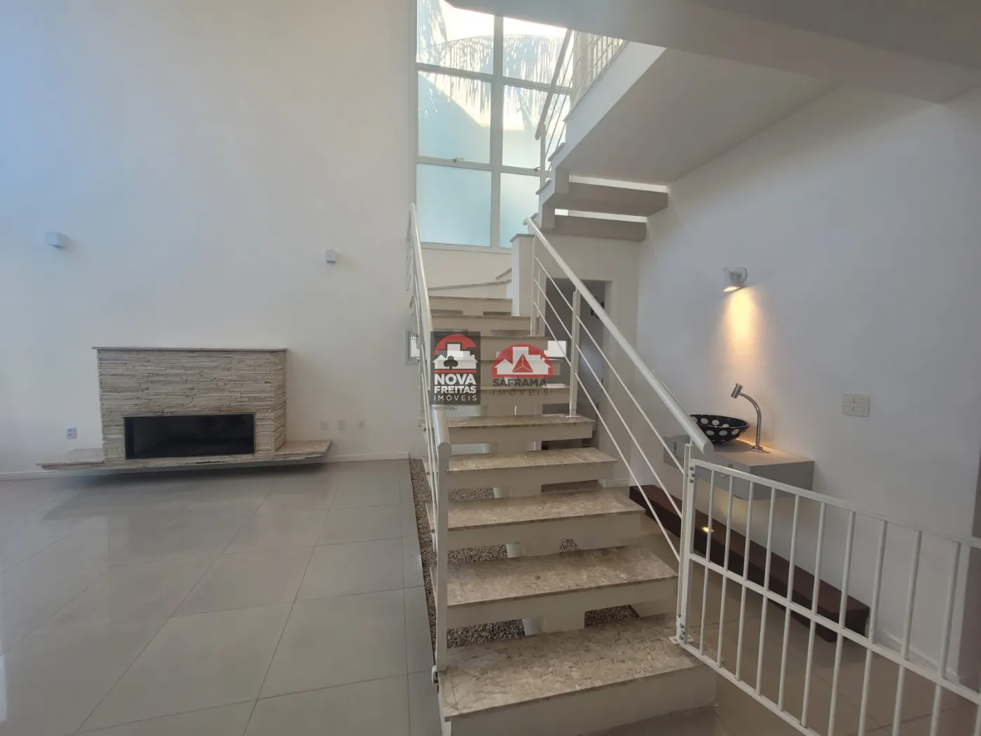 Sala com lareira traz um charme especial, perfeito para as noites mais frias.