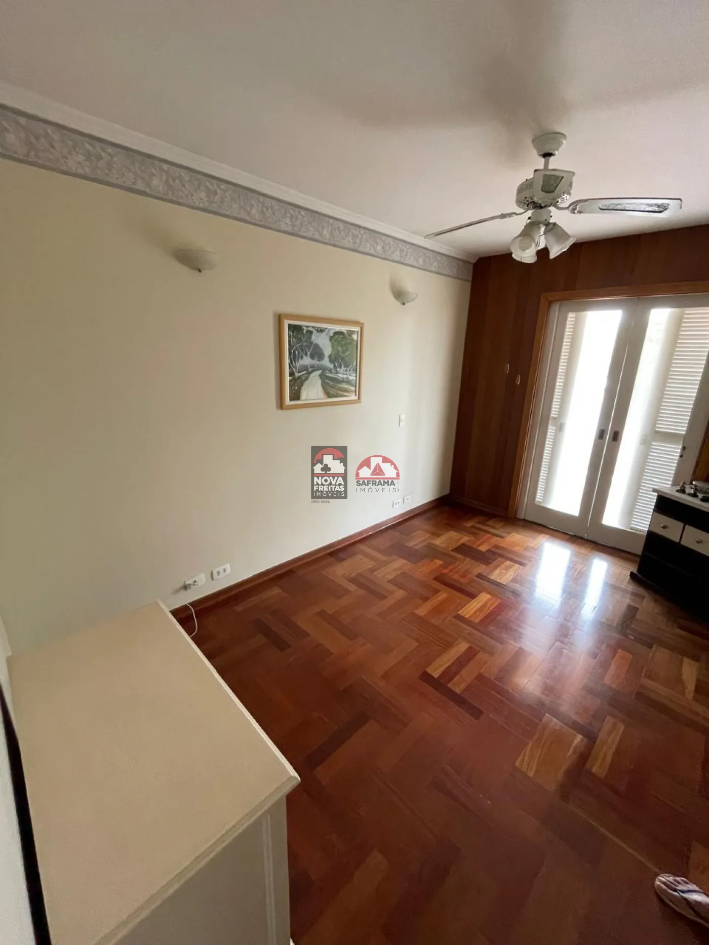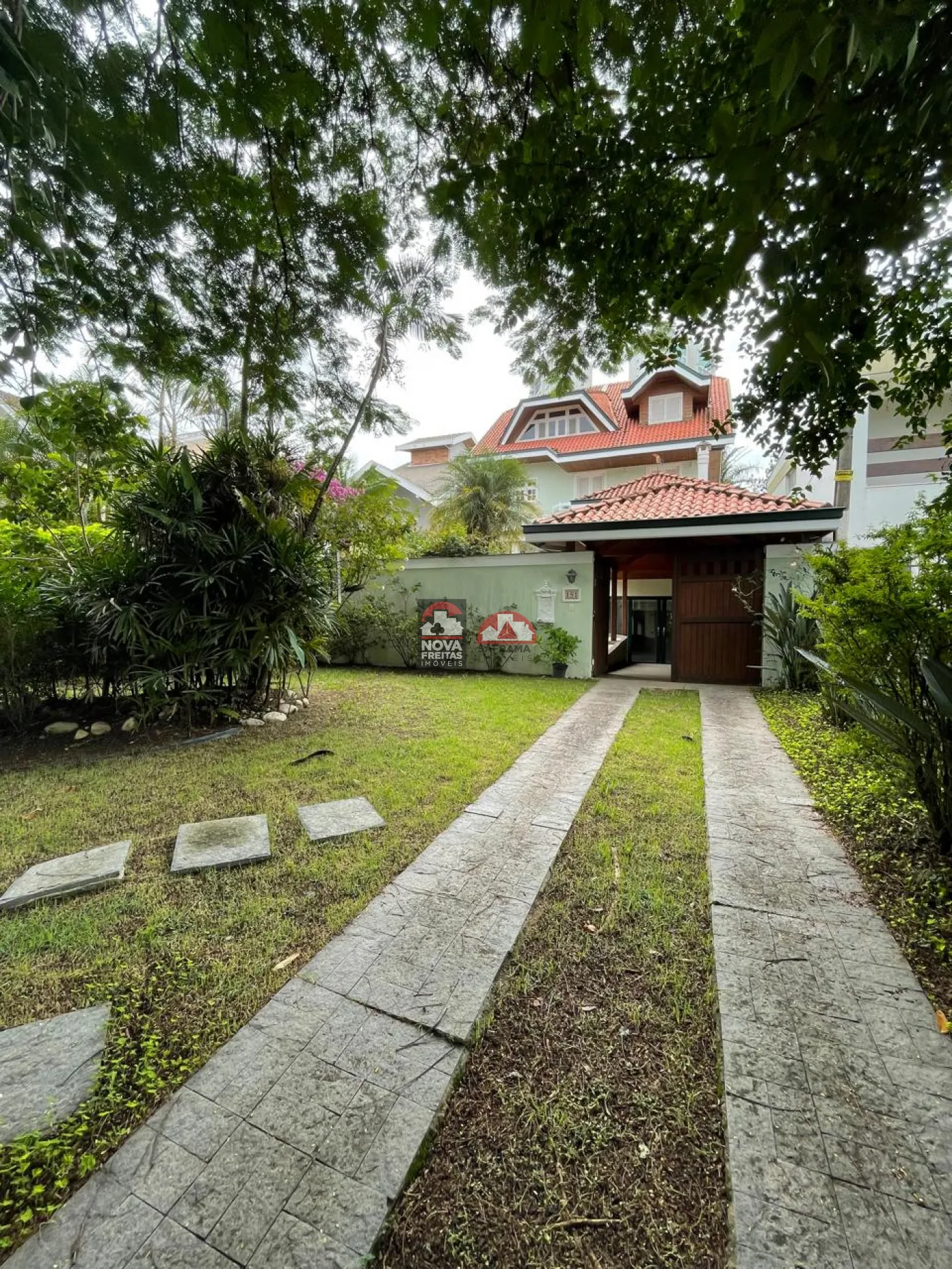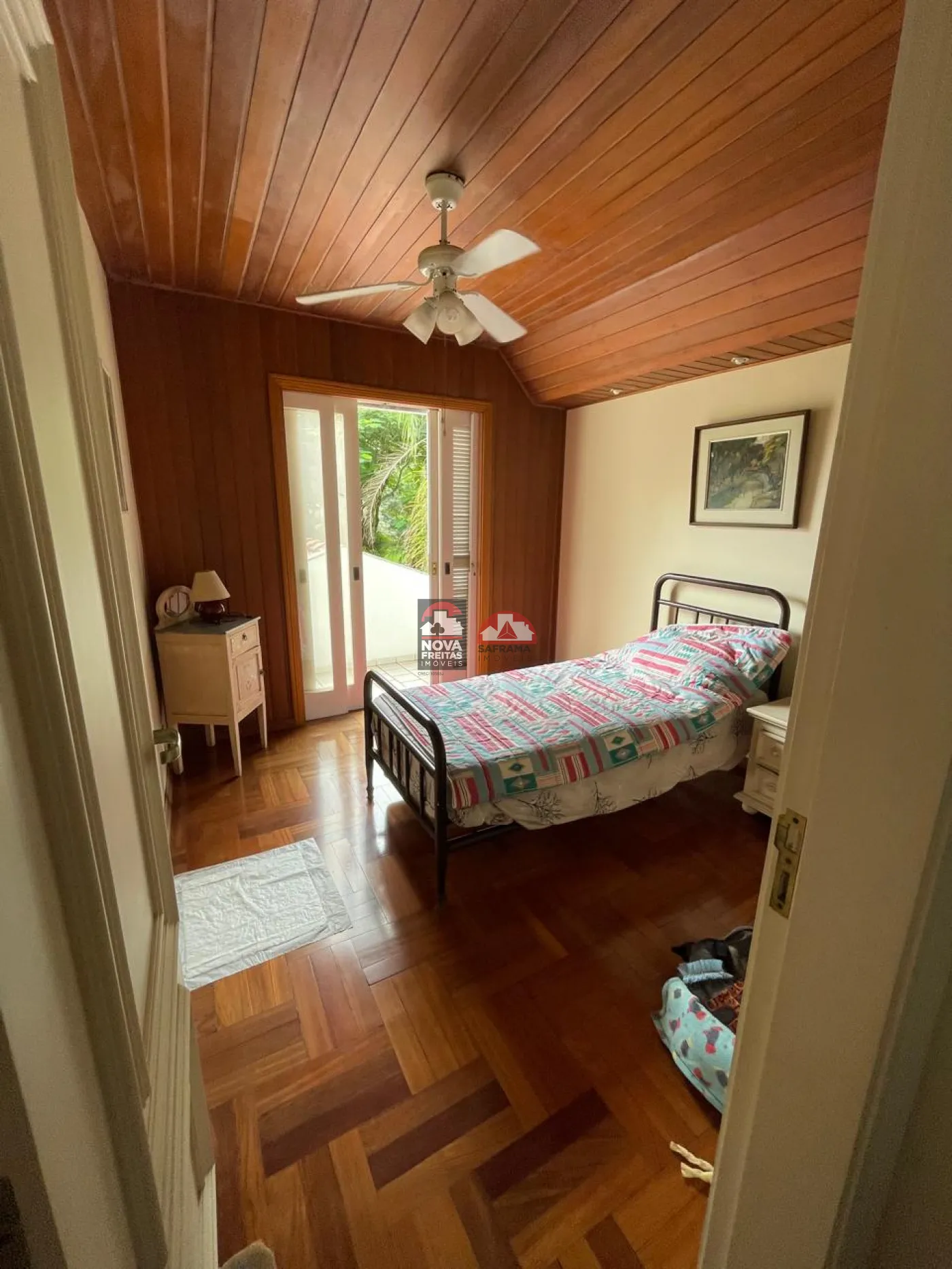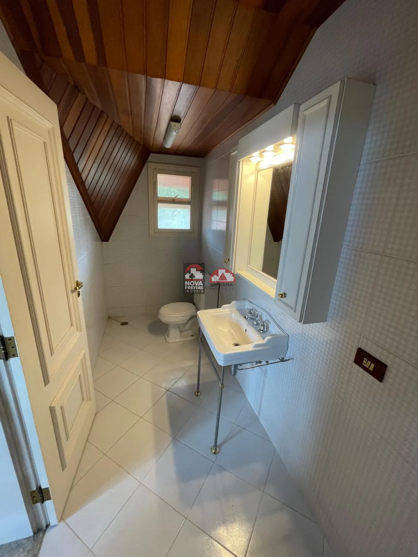 Sala social com hall de entrada (em granito), lavabo, bar completo (em mogno), lareira e os demais ambientes. Pisos em tábua corrida na área de lareira, sala de visita e sala de jantar e varanda (vide sala de TV)