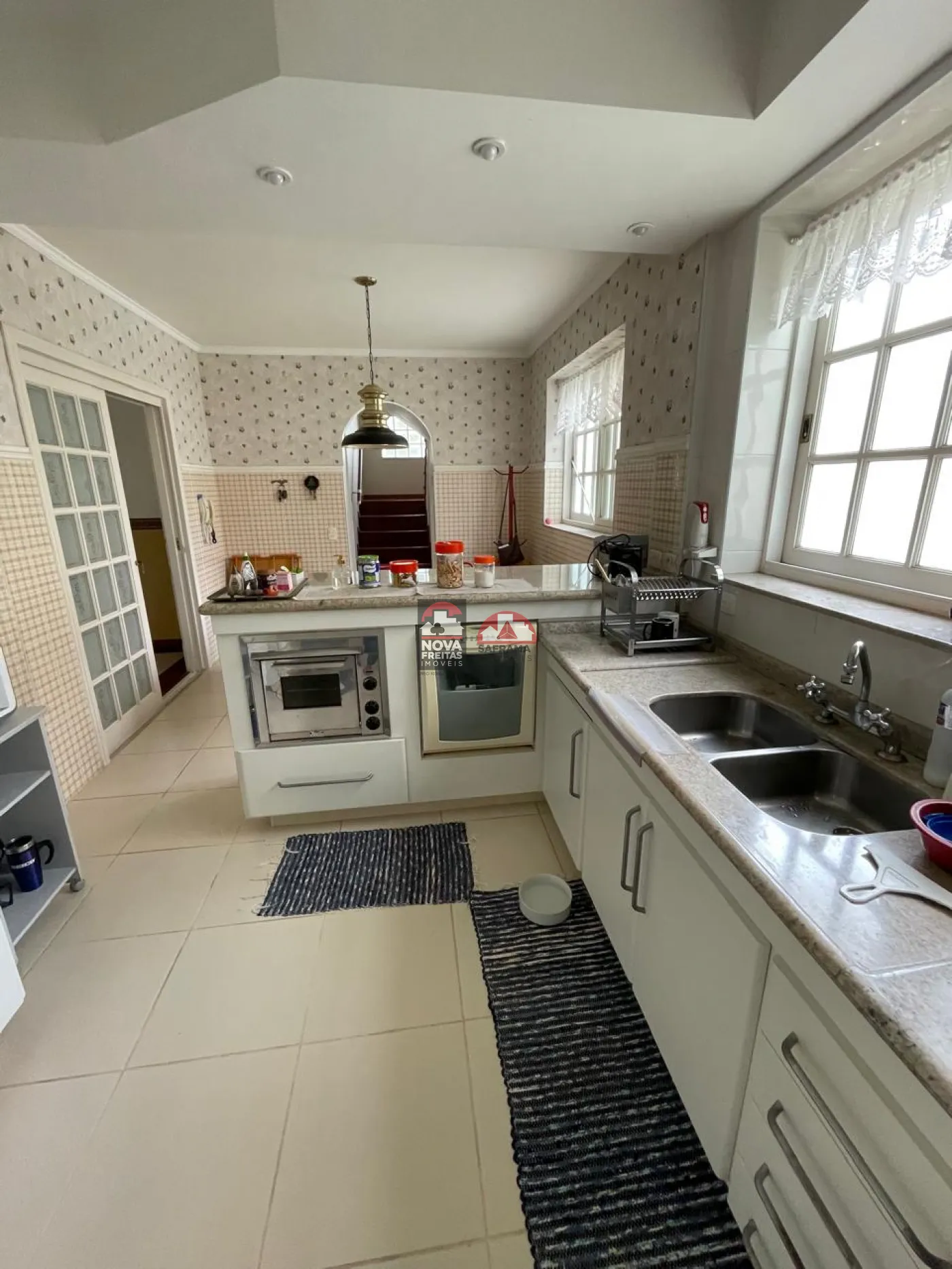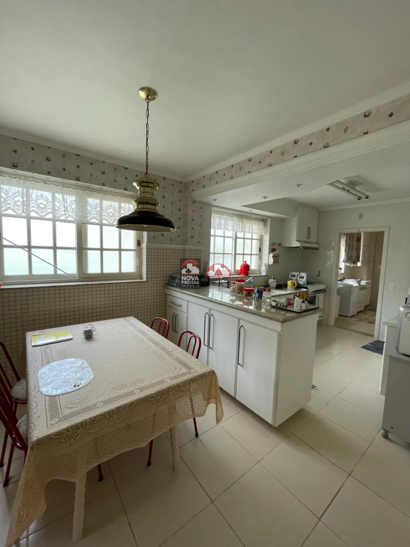 Cozinha, dispensa, sala de refeições e lavanderia com armários.
