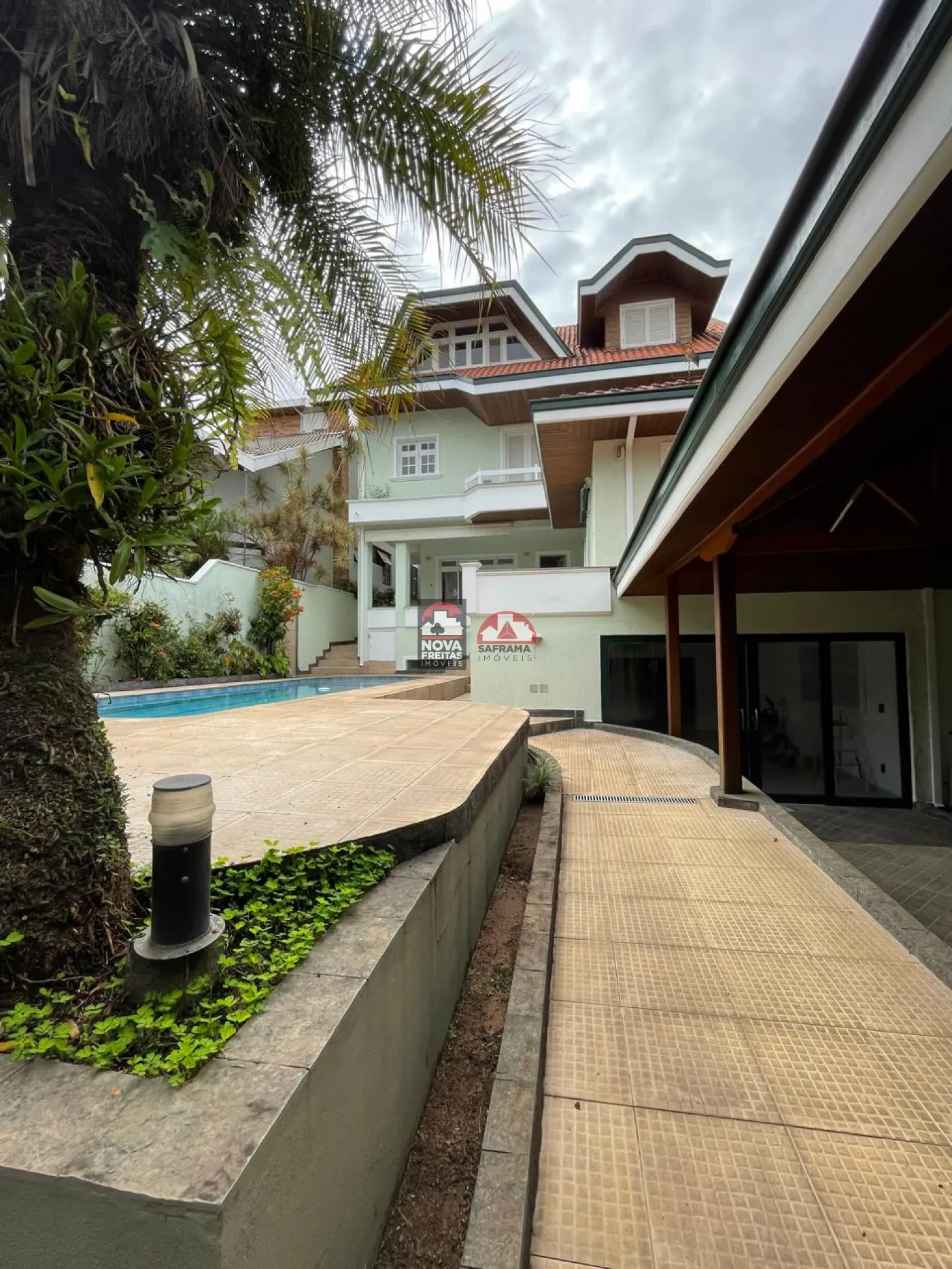 Piscina (5,00m x 9,00m) com cascata, hidro, sauna, vestiário e banhos.