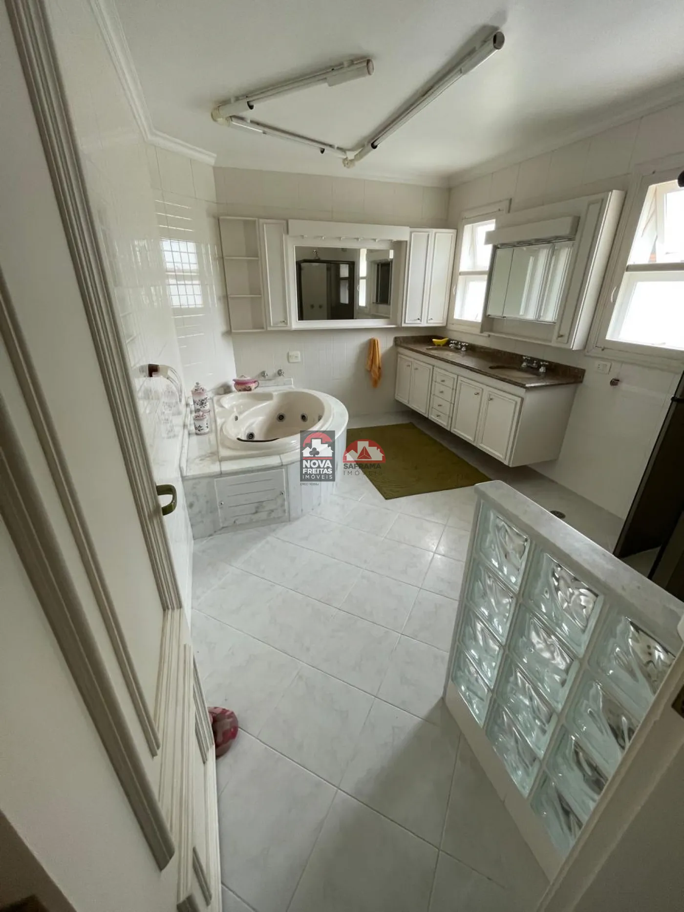 Cozinha, dispensa, sala de refeições, sala de TV e som, corredor, dois quartos com banheiro comum, suíte secundária, suíte máster com closet e banheiro completo (inclui banheira com hidro) e varanda em comum com sala de visitas e de TV.