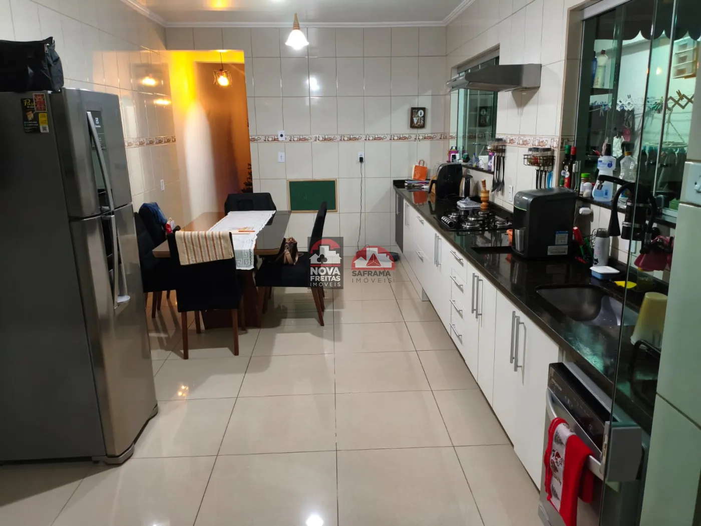 Terreno: 270 m² Área construída: 165,78 m² Detalhes do imóvel: 3 dormitórios, sendo 1 suíte master Sala ampla com lareira aconchegante Banheiro social Cozinha funcional Área social integrada Varanda espaçosa com churrasqueira e fogão a lenha com forno 3 vagas de garagem cobertas Segurança e conforto: Cerca elétrica e câmeras de monitoramento Janelas padronizadas Piso em porcelanato nas áreas comuns Piso laminado nos dormitórios Imóvel ideal para quem busca conforto, segurança e um espaço perfeito para viver bons momentos em família e com amigos. Bairro tranquilo e valorizado, com fácil acesso a comércios, escolas e vias principais da cidade. Entre em contato e agende uma visita! Imobiliária Nova Freitas, seu sonho começa aqui!