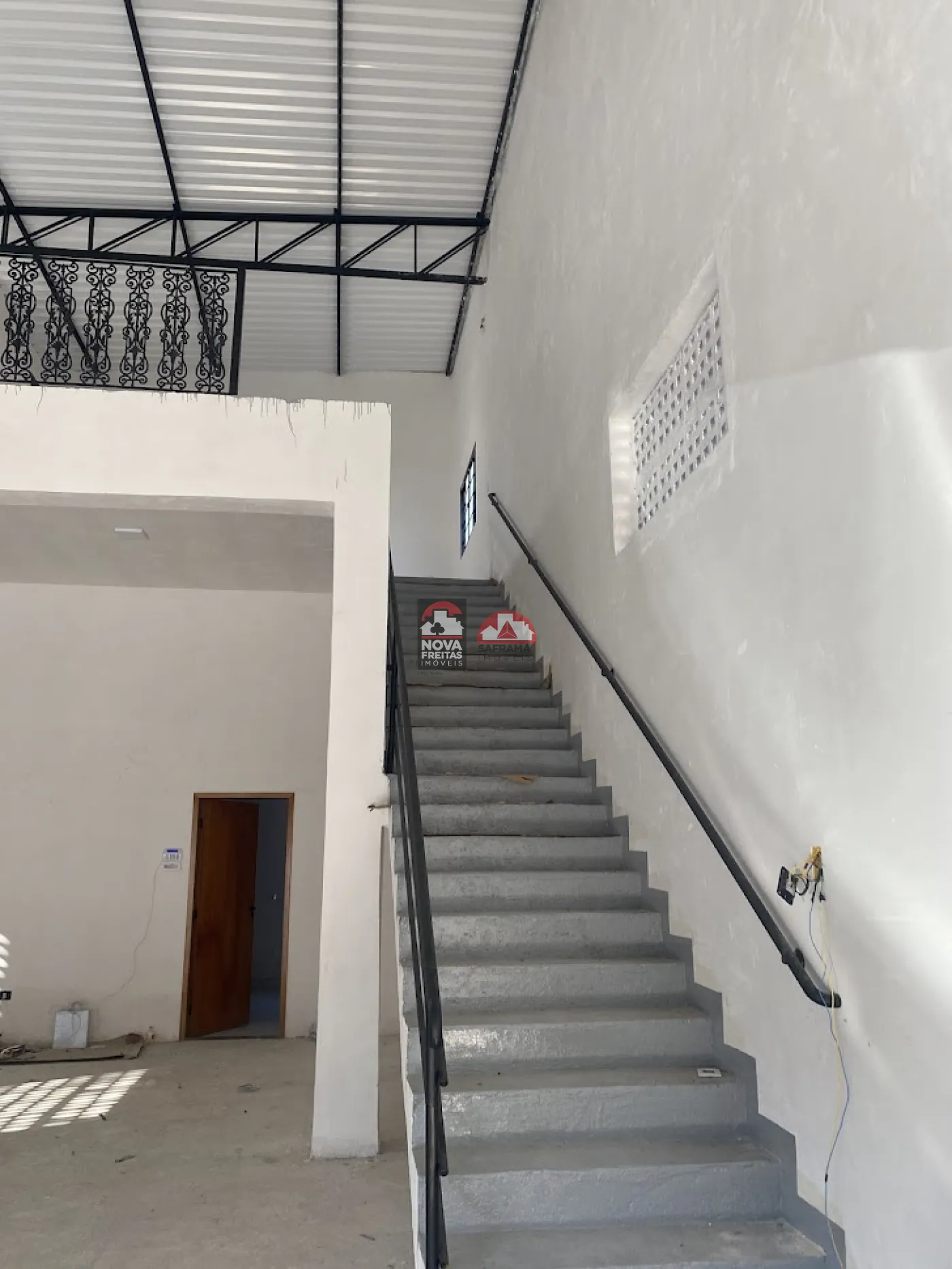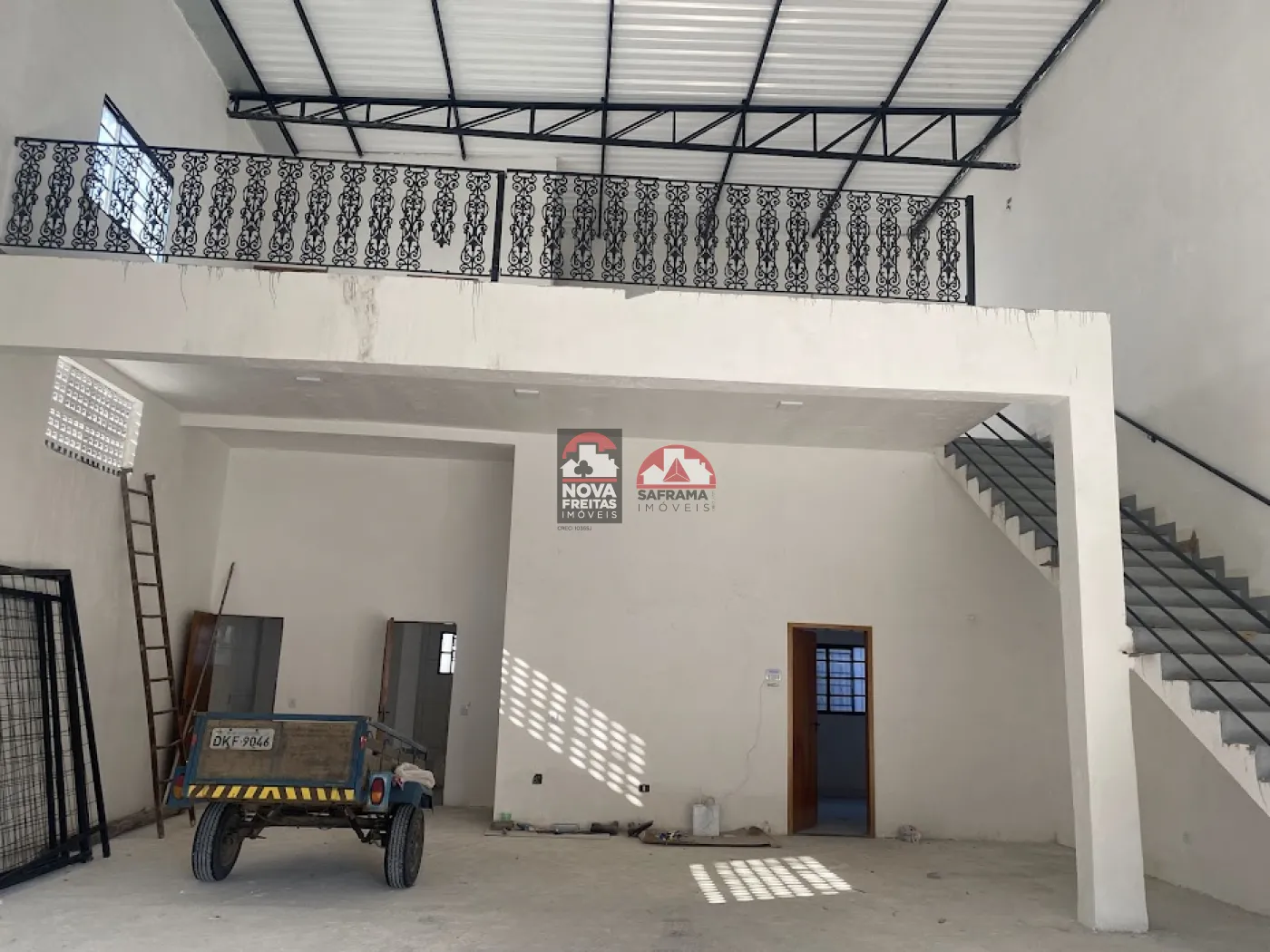 Galpão 240m² com 7mts pé direito, porta automática com altura de 4,5 mts, largura de 5,40 mts. Mezanino com 7x9,50 mts. Uma cozinha e uma sala em baixo.